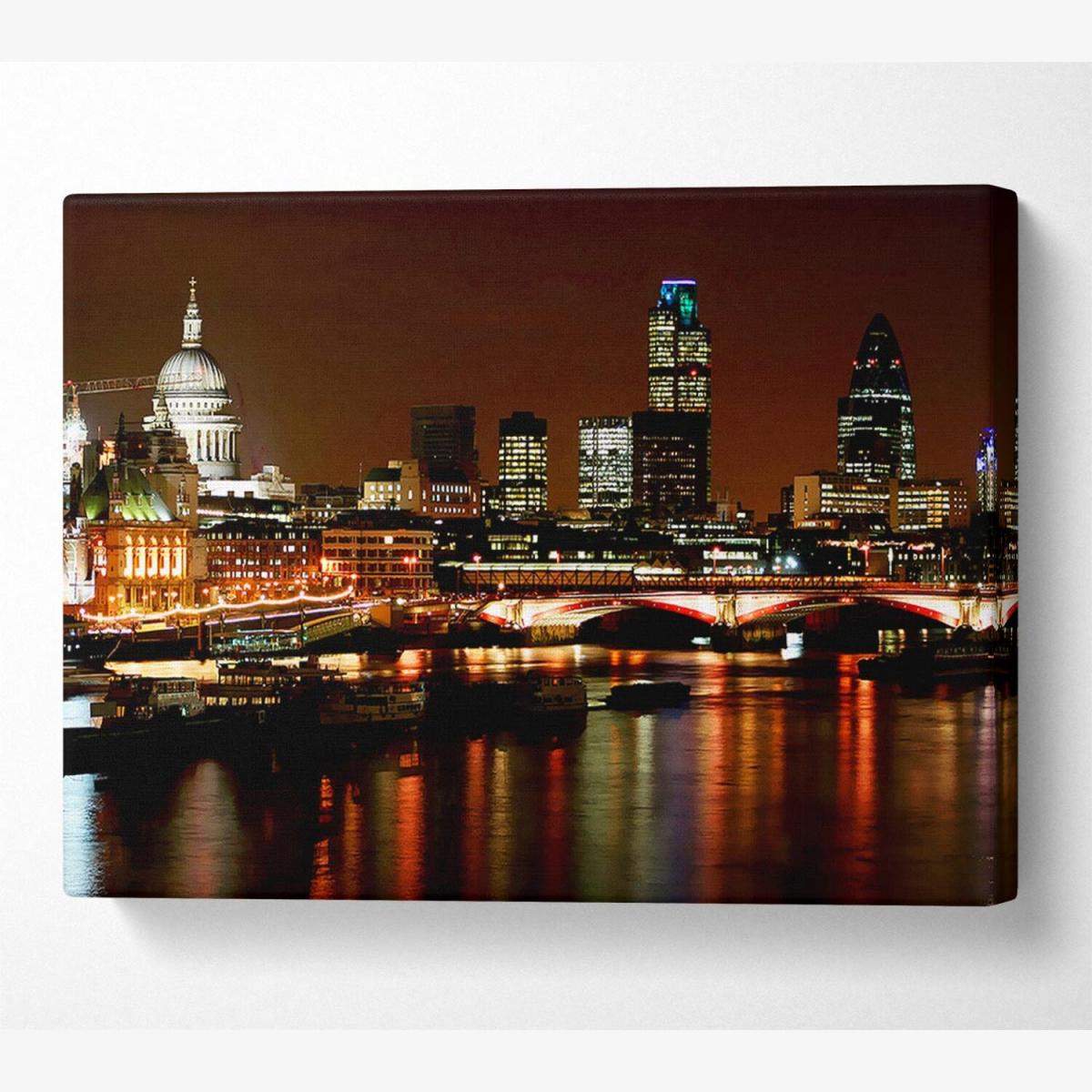 London Thames Night Lights Canvas Print Wall Art - Yellow / 81.28cm