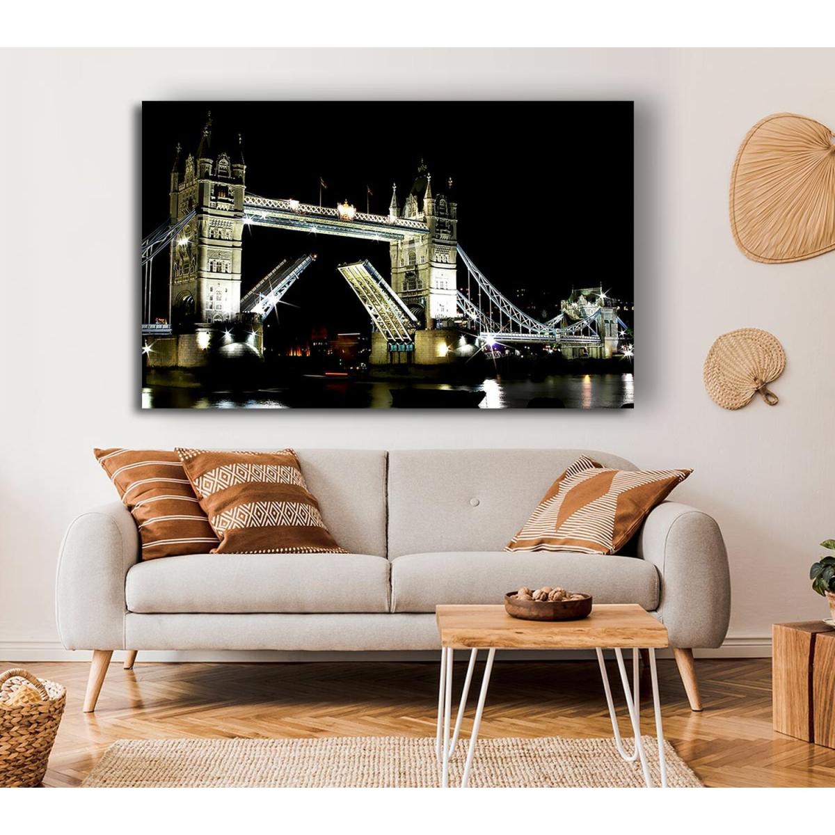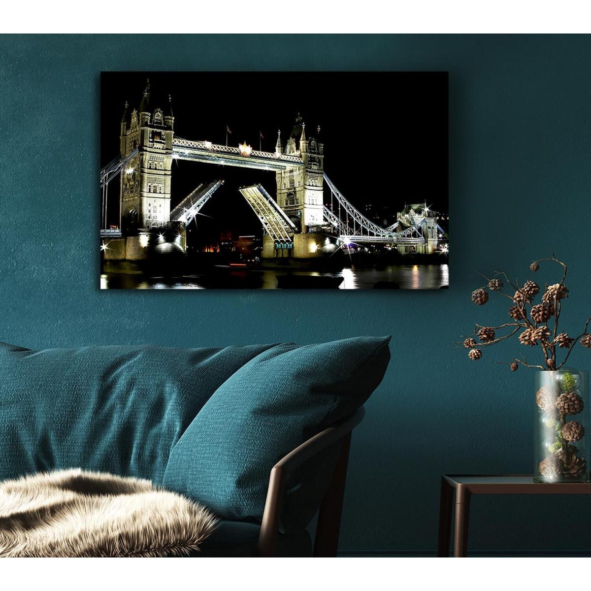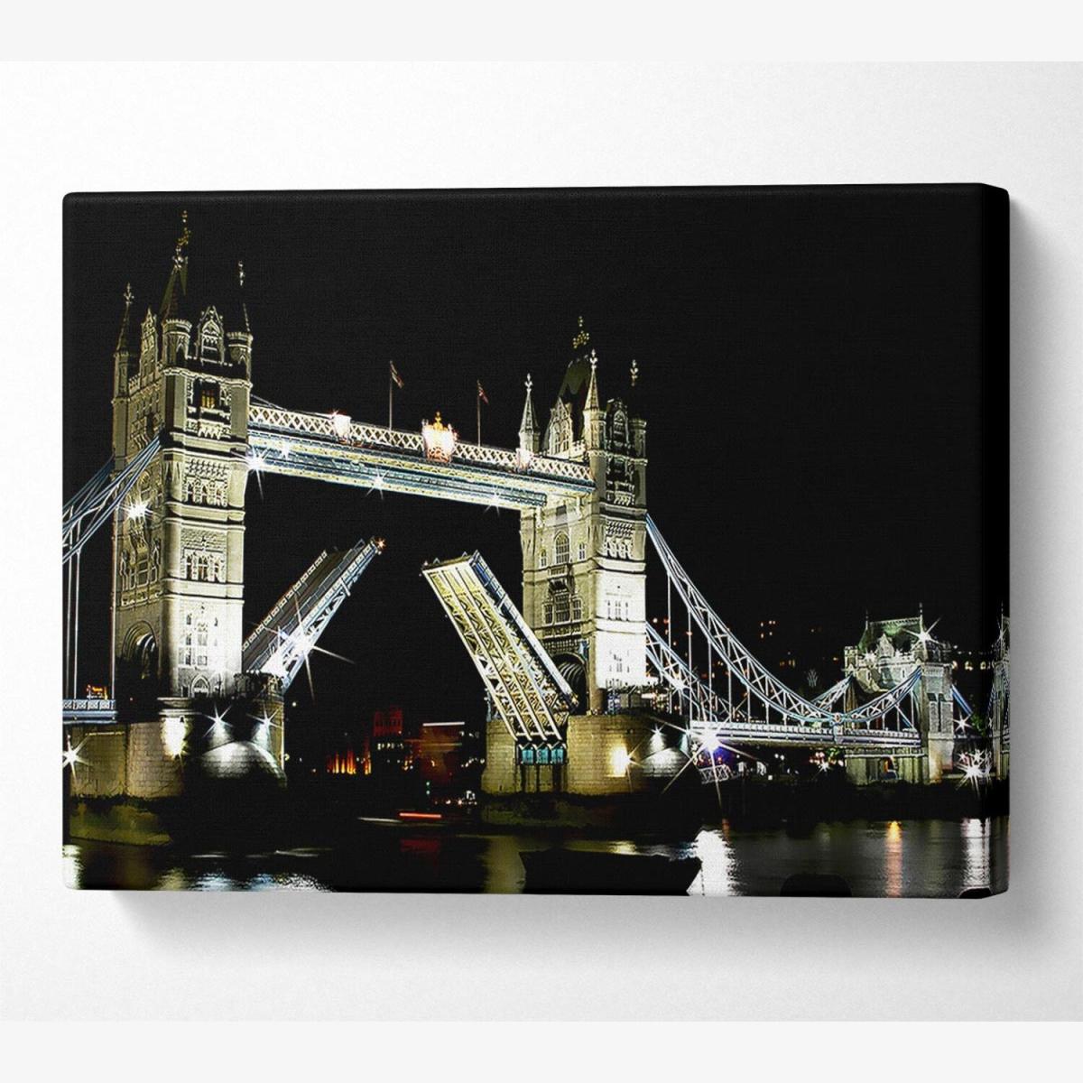 London Tower Bridge Night Opening Canvas Print Wall Art - Yellow / 81.28cm