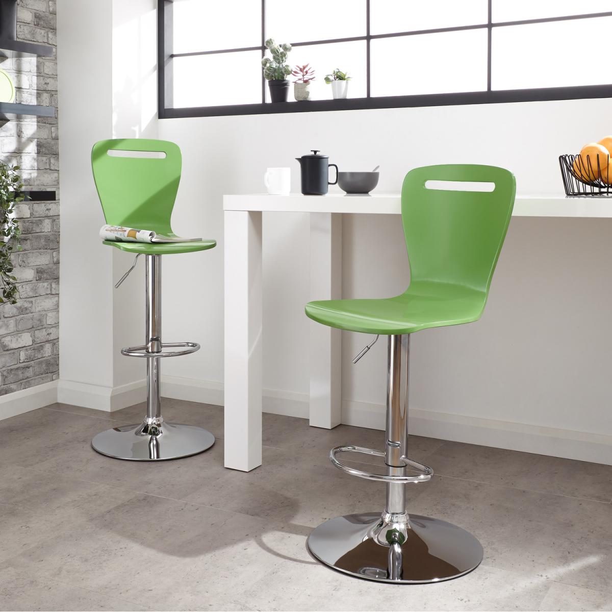 Set the scene for an impromptu meal with these striking bar stools. Each stylish bar stool features a bentwood seat and back rest mounted on a sturdy chrome-plated frame with built-in footrest, terminated in an extra-wide circular base. The seats are contoured for comfort and height-adjustable via a simple lever operation. The frame incorporates an effective gas piston mechanism that allows you to tweak the elevation to suit. The base has a rubber floor guard for stability, even on polished surfaces. Safe (EU standards), durable and available as pairs in a rainbow of primary colours.