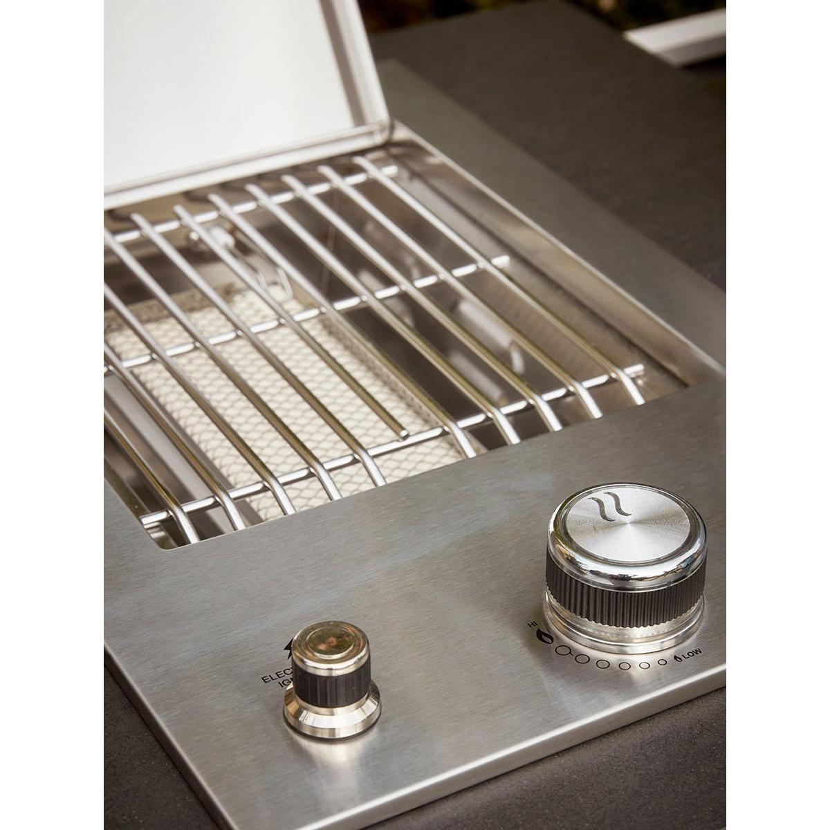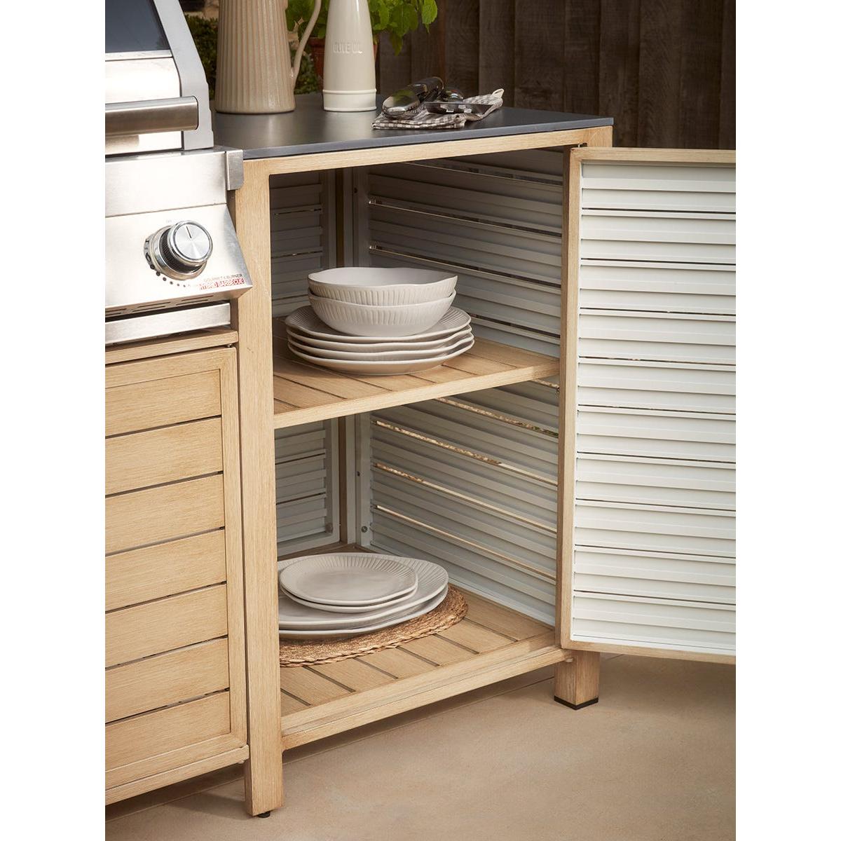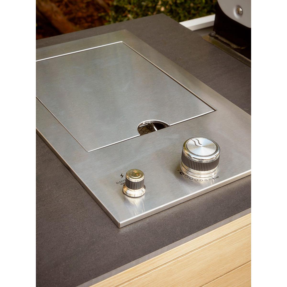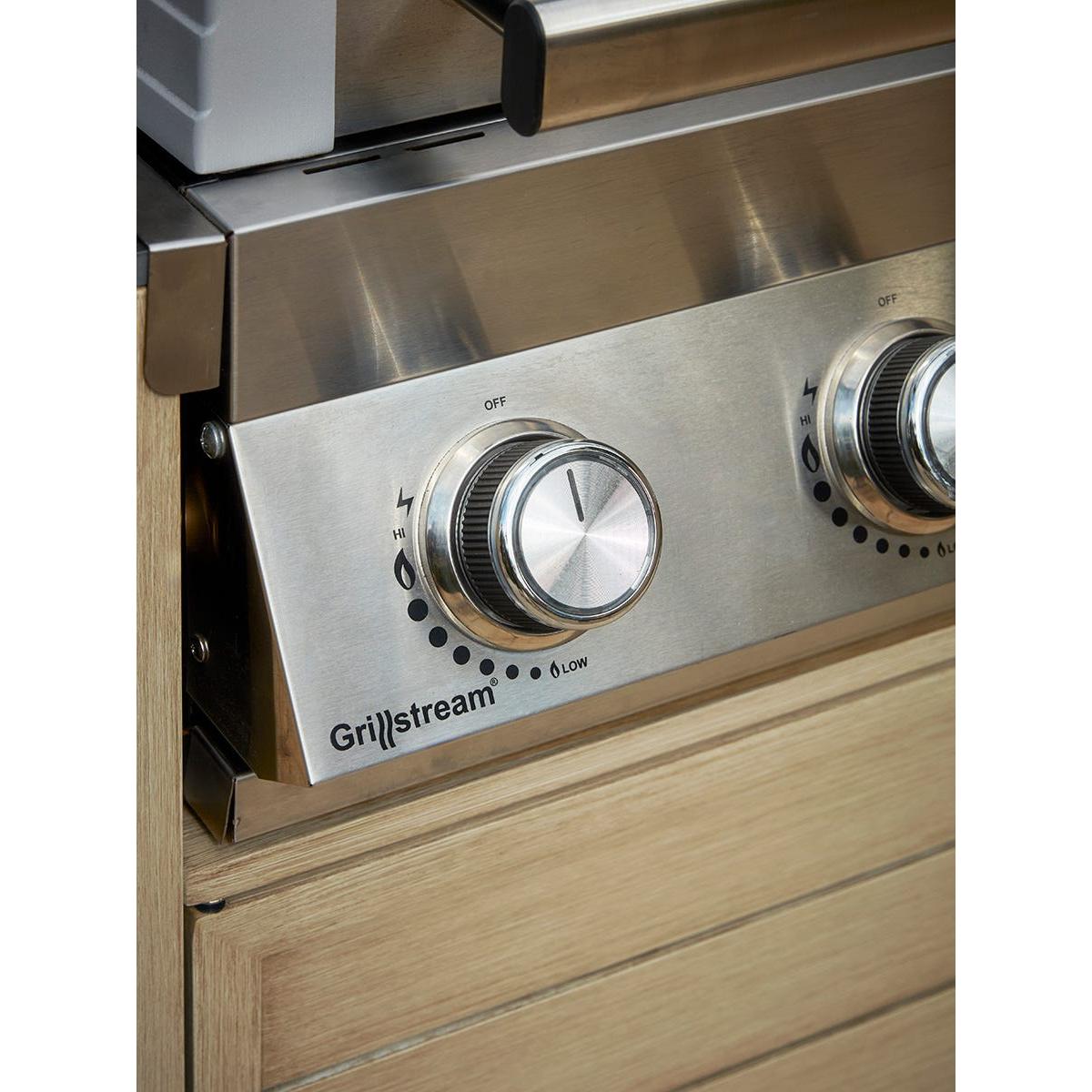 Create an instant outdoor kitchen with our Long Island BBQ and integrated storage cabinet which will transform your outdoor living, all year round. The technology of our Long Island six burner hybrid BBQ offers everything for the discerning chef who likes creative cooking outdoors integrated with a stunning range of outdoor kitchen units. Enabling you to keep all the utensils, pans and crockery you need close to hand, you’ll be even more enthusiastic about the spontaneity with which you can cook and serve a delicious al fresco feast. The attractive slatted cupboards are actually made from aluminium which has been handpainted to create a realistic wood grain effect. A scratch resistant coating makes it even tougher. The barbecue itself has all the features of our Gourmet BBQ - the luxe stainless steel finish, glass viewing hood, LED control and integrated side ceramic sear burner shelf. A modular system also allows you to remove the circular griddle in the middle of the grill to add a pizza stone or wok stand. Grillstream technology offers a double grill system whereby the top grill streams away most of the fats and juices that would normally cause flare-ups. Anything that drips over will collect in the bottom grill and is channeled into a collection cup ready for disposal - making for a much cleaner cooking experience. Our BBQ is contemporary and well formed, to sit effortlessly into your outdoor dining space. If, like us, you love to cook and entertain outside - take inspiration from Scandinavia and dine outdoors on even the coolest of days - the option of using gas or coals will allow all days to be catered for. Our Gourmet Gas & Charcoal Stainless Steel BBQ is fitted with a 27mm Propane regulator.