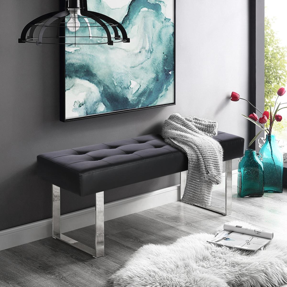 This faux PU leather stool with black coloured legs will bring elegance, style and practicality whether it's being used with your dressing table, or tucked in the corner of your bedroom. A solid and wonderful stainless steel base, can be used with the dressing table. Perpetual classic appearance, upholstered seat and a softback provide a cosy seating experience. Slipmats at the bottom of stool legs to ensure its stability and prevent scratches on the floor. The perfect stool for living rooms, bedrooms, or any space where an extra surface is needed.