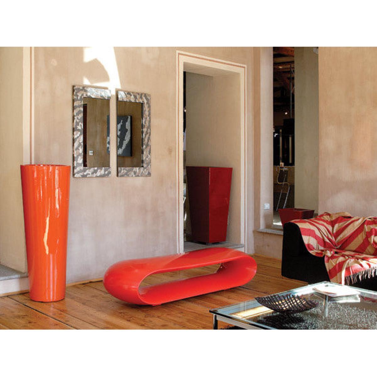 Fashion bench in polyethylene characterised by an external chrome surface and by the lightness of his open shape. Ideal for shops furniture, contract but also at home.