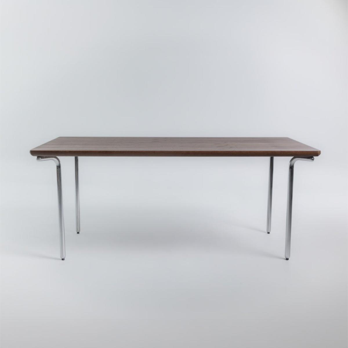 - Easy to assemble- Fits through any door- Made in Italy The Loop dining table embodies modern craftsmanship at its finest. The walnut-stained ash veneer top highlights the natural beauty of the wood grain, while a gently curved edge adds a touch of softness to its refined silhouette. Made in a family-run workshop in Italy. The elegantly bent metal legs, crafted in a specialist factory, provide durability with a light, sculptural form. Available in chrome or black, they offer versatility to suit different interior styles. Whether for daily meals or special gatherings, Loop is more than just a table; it’s a place to connect, share, and make lasting memories.