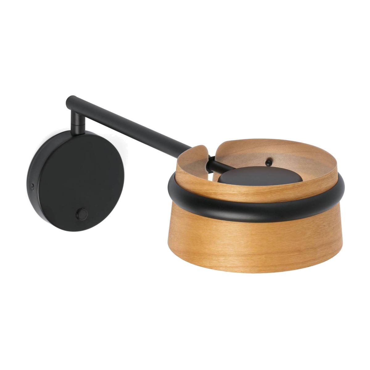 The wall lamp includes both beauty and convenience in its design. The fitting is made from a sophisticated black metal body, and a cherry wood shade. This makes it the ideal fitting in any style room. The fitting includes a touch dimmer, allowing you to create the perfect amount of light for any situation. Available in a choice of matching fittings, you can complete the look of the room. The LED lamps provide ample light while keeping energy consumption and overhead costs down. is adjustable in position. Class two.