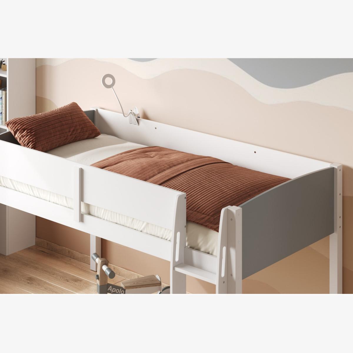 Tuck your little one into our Loop Midsleeper Bed, by Flair Furnishings, and be assured of a safe, gentle night's sleep. Featuring a child-safe design and available in two cool colour options, White or White Grey this mid-sleeper bed is sure to be a big hit. Designed to fit neatly into your child's bedroom, this sleek, Scandinavian-style bed boasts a simple, yet charming design. With curved end panels giving the bed a softer look compared to conventional bed designs, safe ladder rungs, and a sturdy finish, makes this bed perfect for children upgrading to a more grown-up bed!This white mid-sleeper also features smart, safeguard rails - So you can sleep soundly knowing your child is safe from accidental falls.