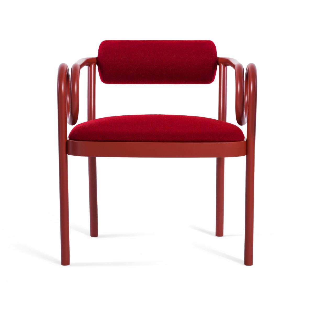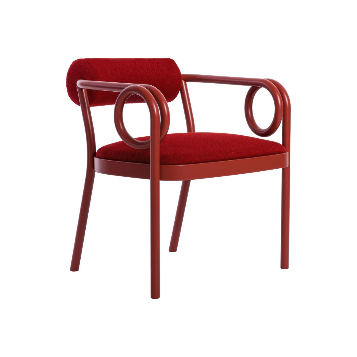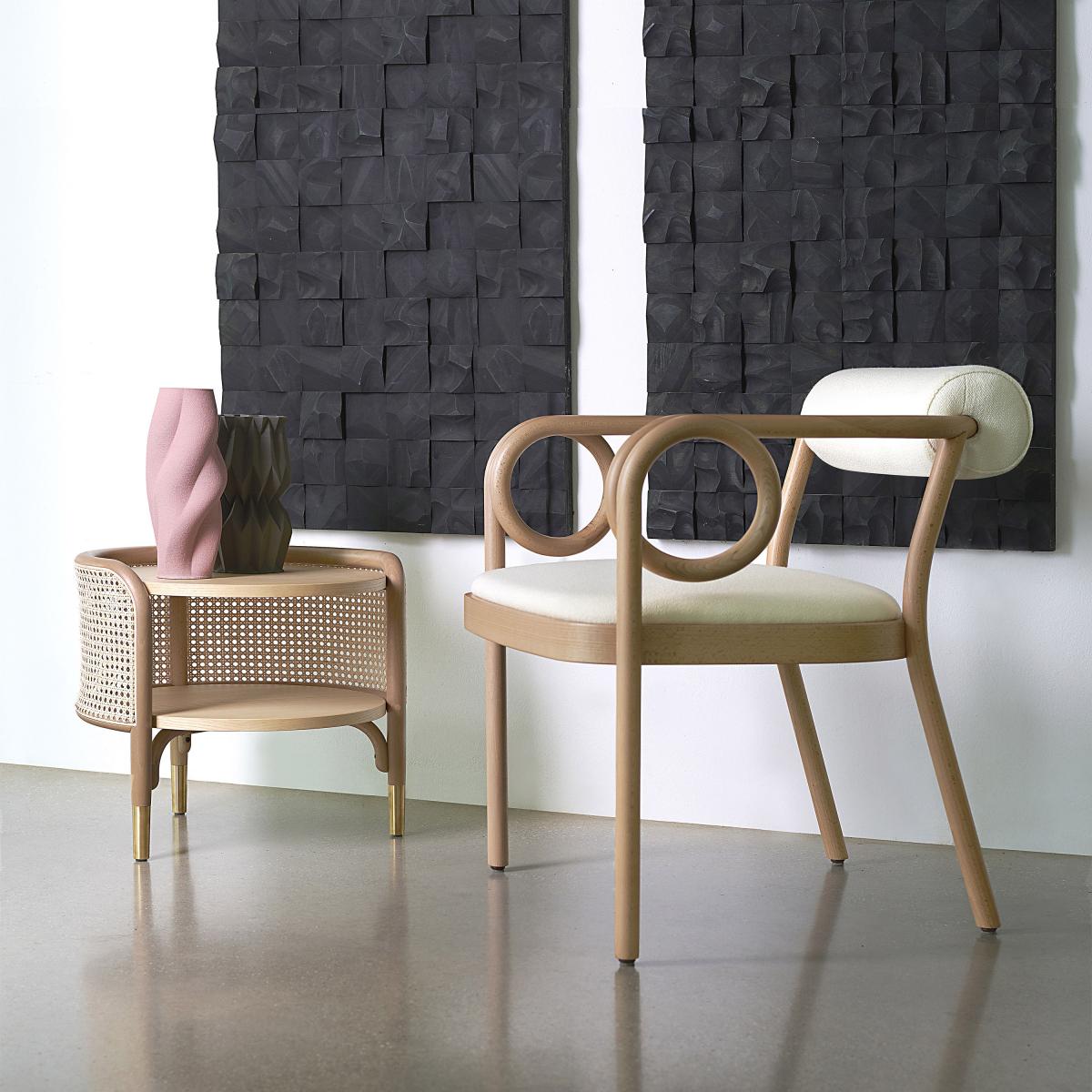 Responding to the invitation extended by historic manufacturer Gebrüder Thonet Vienna, designer India Mahdavi created the Loop armchair. With its playful curves, this armchair has the charm of a hand-sketched drawing and benefits from the ancestral expertise of the famous Venice-based creative studio: "Gebrüder Thonet Vienna is the only manufacturer in the world that lets you translate a freehand design into a living piece in wood of this quality. "The steam-bent wood element, the lietmotiv of the Wiener GTV Design brand, has been featured in this project in an unexpected way in the form of loops, that India has designed in single stroke, without lifting her pencil from the sheet of paper, remaining faithful to the idea of movement. The bent beech frame traces a line that winds in on itself, before continuing its path, leaving two folded loops in its wake. These charming buckles push the limits of the curved wood: the wood doubles its efforts to boost its beauty and rounded contours. India worked with a subtle colour palette: the structure and fabric covering come in similar, but not quite identical, tonal combinations. Rich materials, high standards of quality, exceptional finishes and an original form, all wonderfully characteristic of the Wiener GTV Design spirit. Drawing on the tradition and way of thinking of Michael Thonet, Wiener GTV Design develops products rooted in an innovative, meticulous design process. A team of designers, creators and artisans produces unique products of exceptional craftsmanship. The durability of the products is at the centre of the development process. This comfortable padded armchair promises cosy moments shared with loved ones or social memories created around the dining table. Cosy and colourful, it creates an ambiance that is simultaneously bohemian, modern and on-trend.