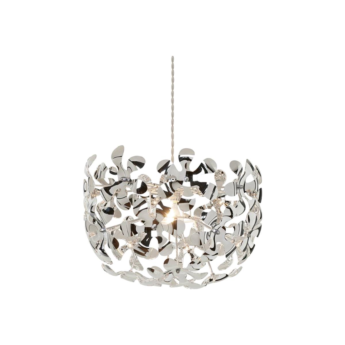 The Loopal Pendant Light Shade is a retro inspired design from the Lighting & Interiors Group. Finished in polished chrome throughout, it features a cluster of retro style flower shapes that project out from the centre to complete the contemporary look. Each flower reflects the light outward for a gorgeous spectrum effect. The Loopal Pendant Light Shade is 380mm in height and 390mm in diameter. It is compatible to be used with light bulbs with a maximum wattage of 42w. The Lighting & Interiors Group Product Code: HOME3510.