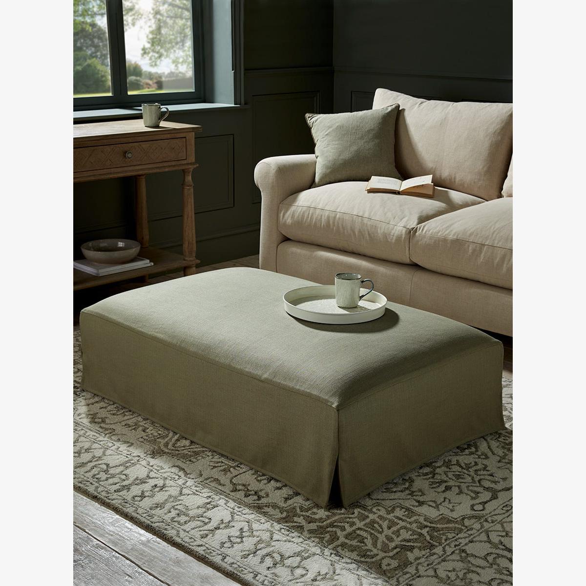 Loose Cover Coffee Table Ottoman – Vintage Grey Herringbone