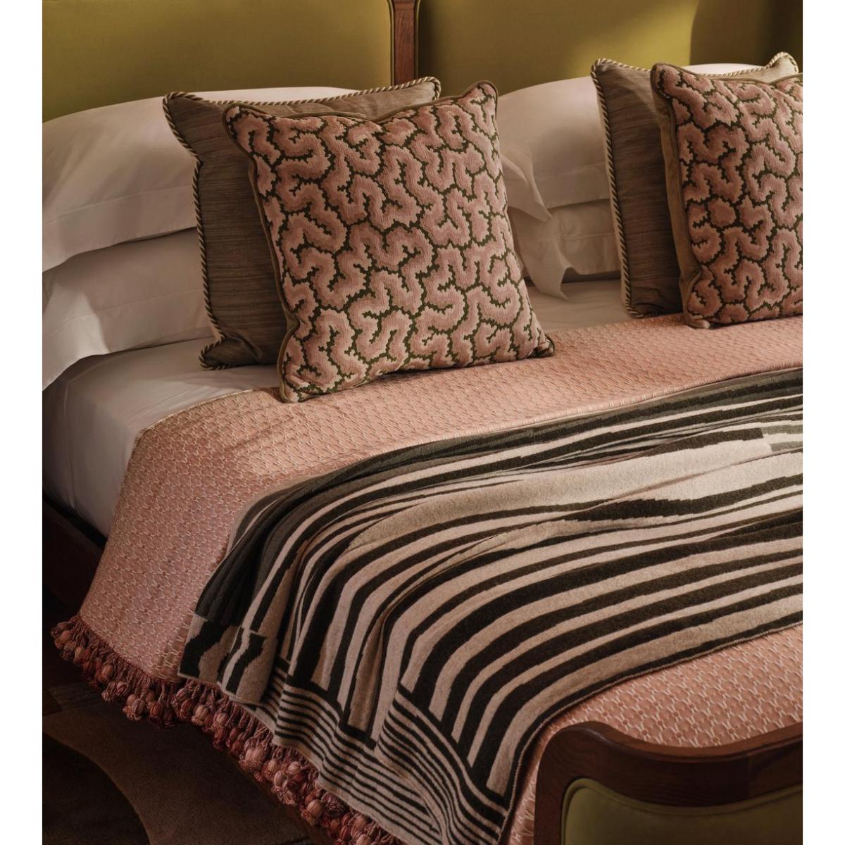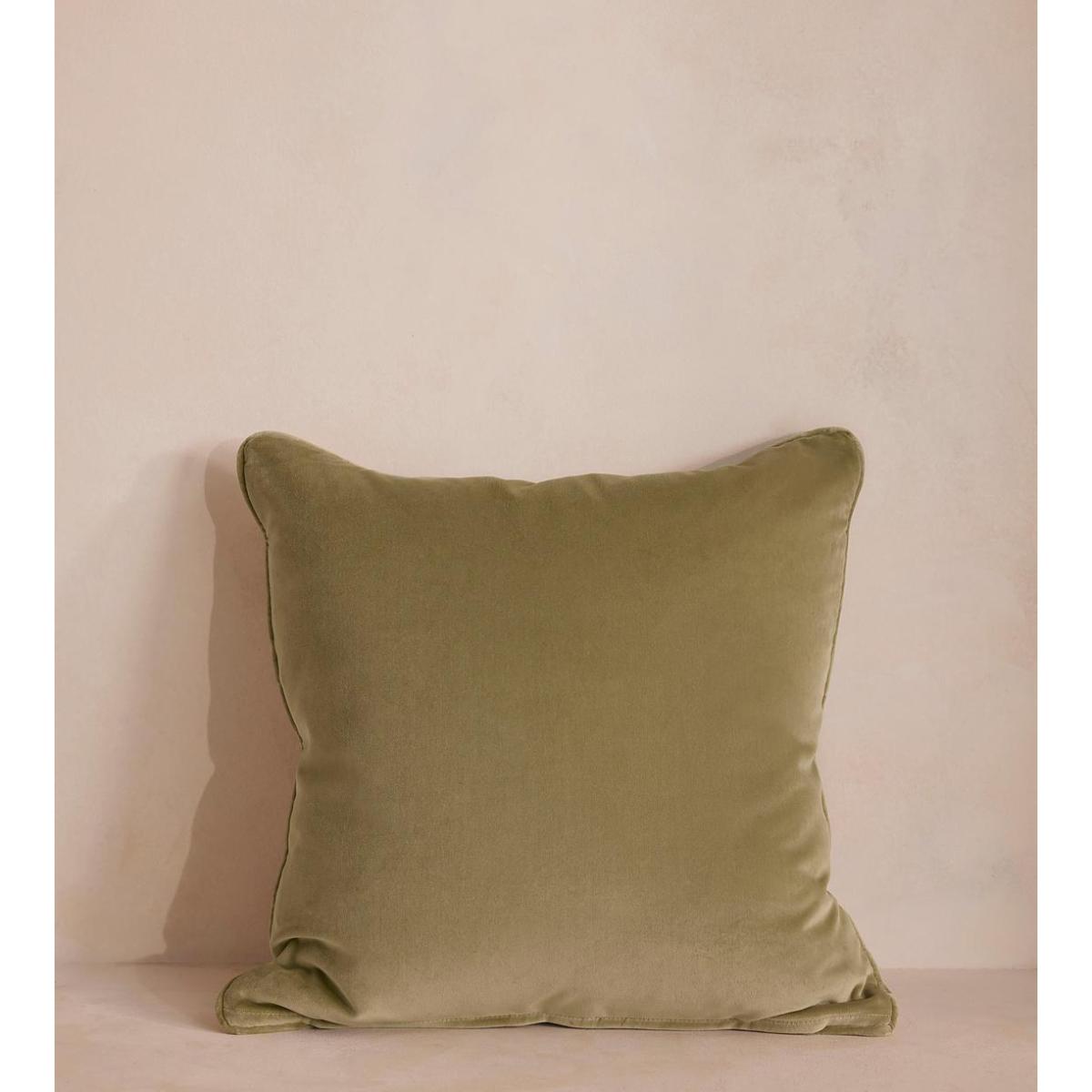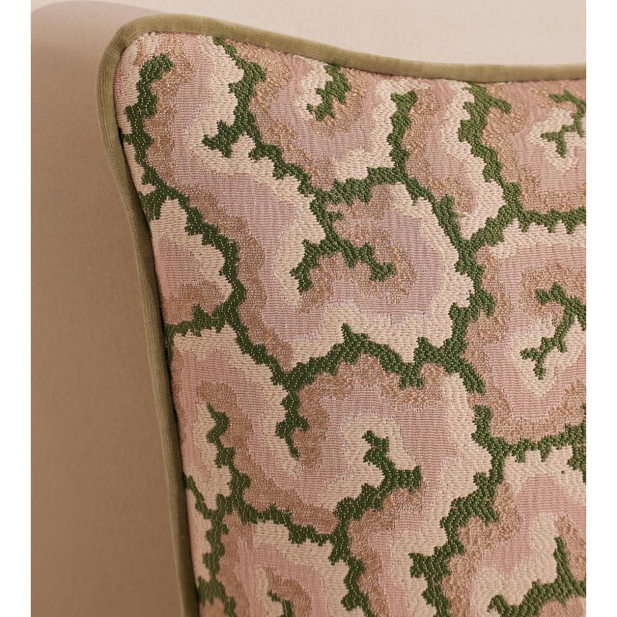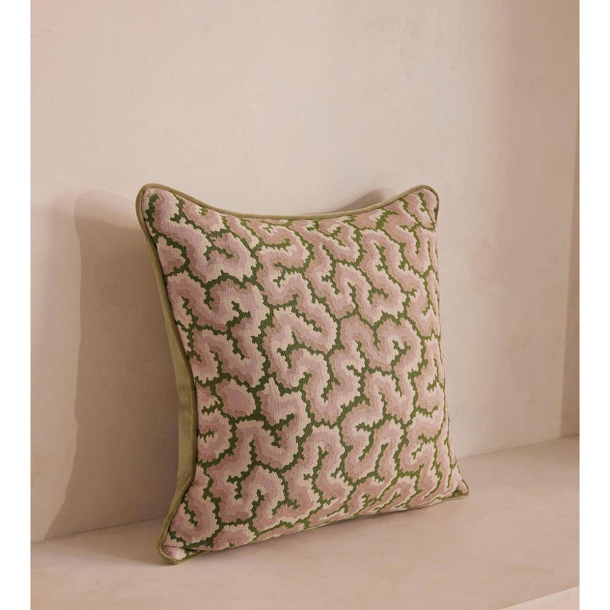 A geometric woven jacquard pattern is complemented by a rich, sage velvet backing and tonal piping. Inspired by the rich velvets seen throughout 76 Dean Street, the Lophelia cushion is backed with a sage-coloured velvet that matches back to our made-to-order palette. At the front, a soft, woven jacquard is surrounded with a matching piped trim.