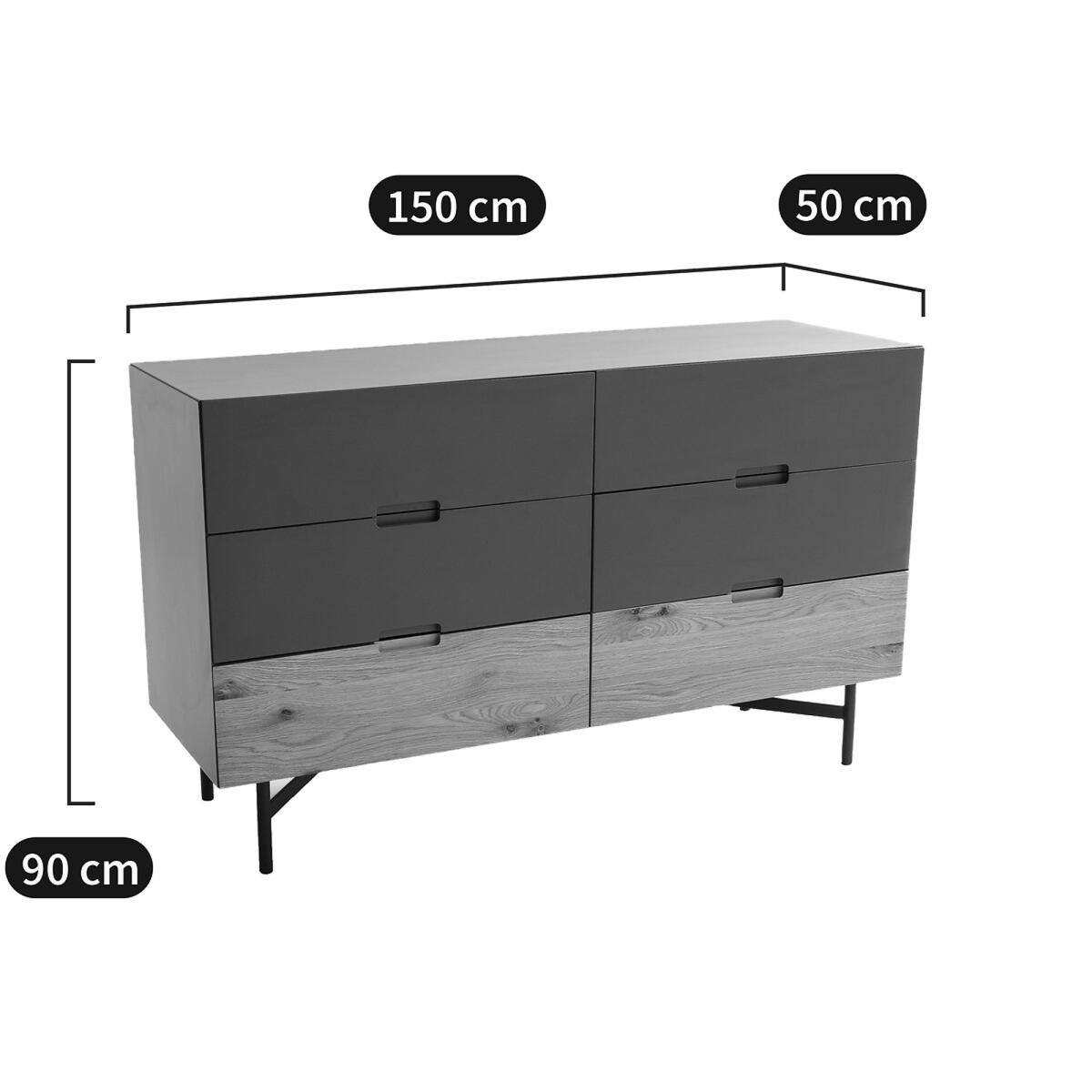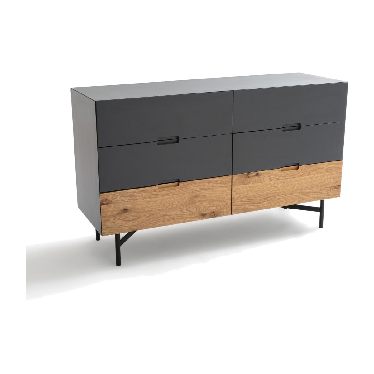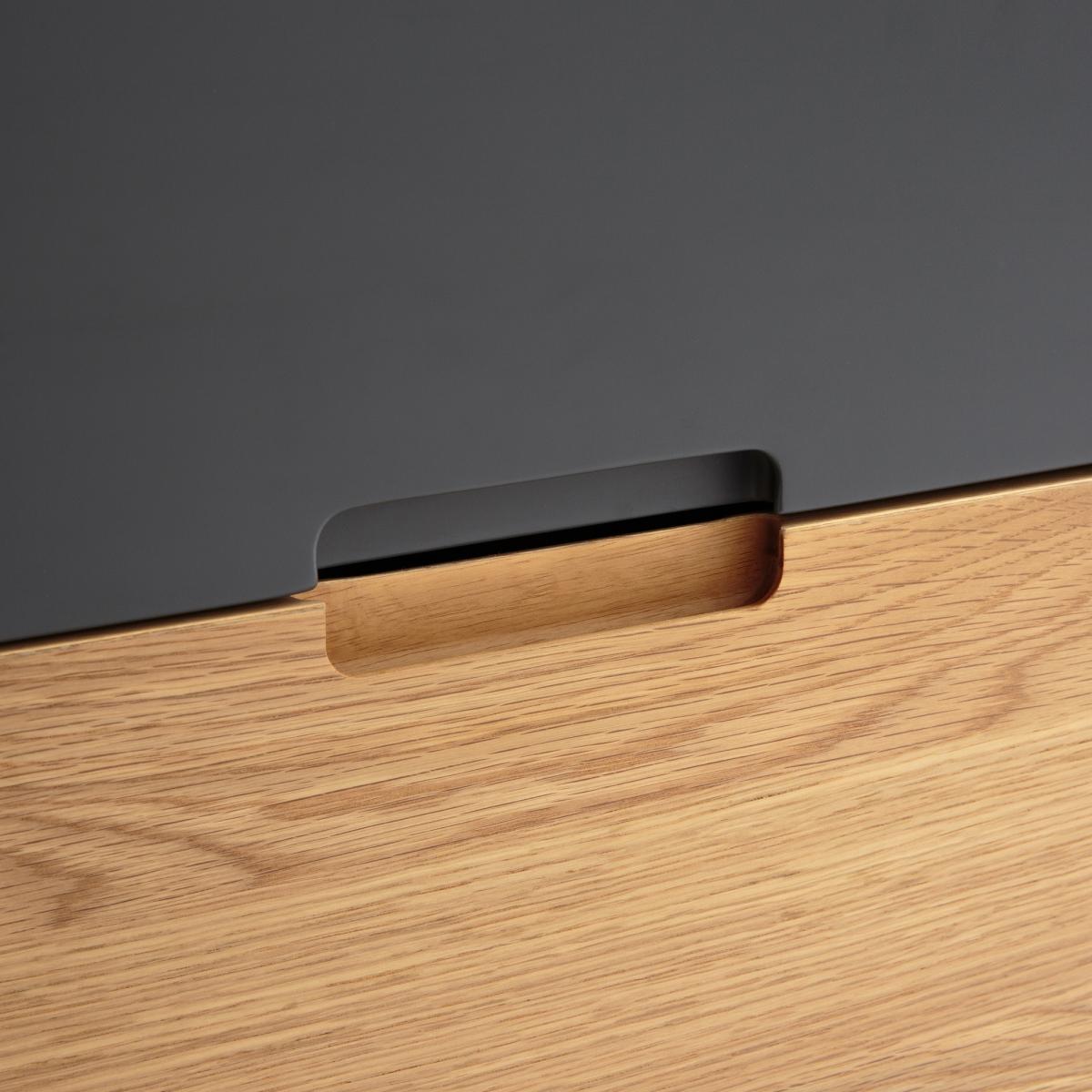 Contemporary inspiration for this pretty two-tone chest of drawers. Coated in a matte anthracite grey, it will bring modernity to your interior, as well as a touch of warmth with the fronts of its oak veneered lower drawers.