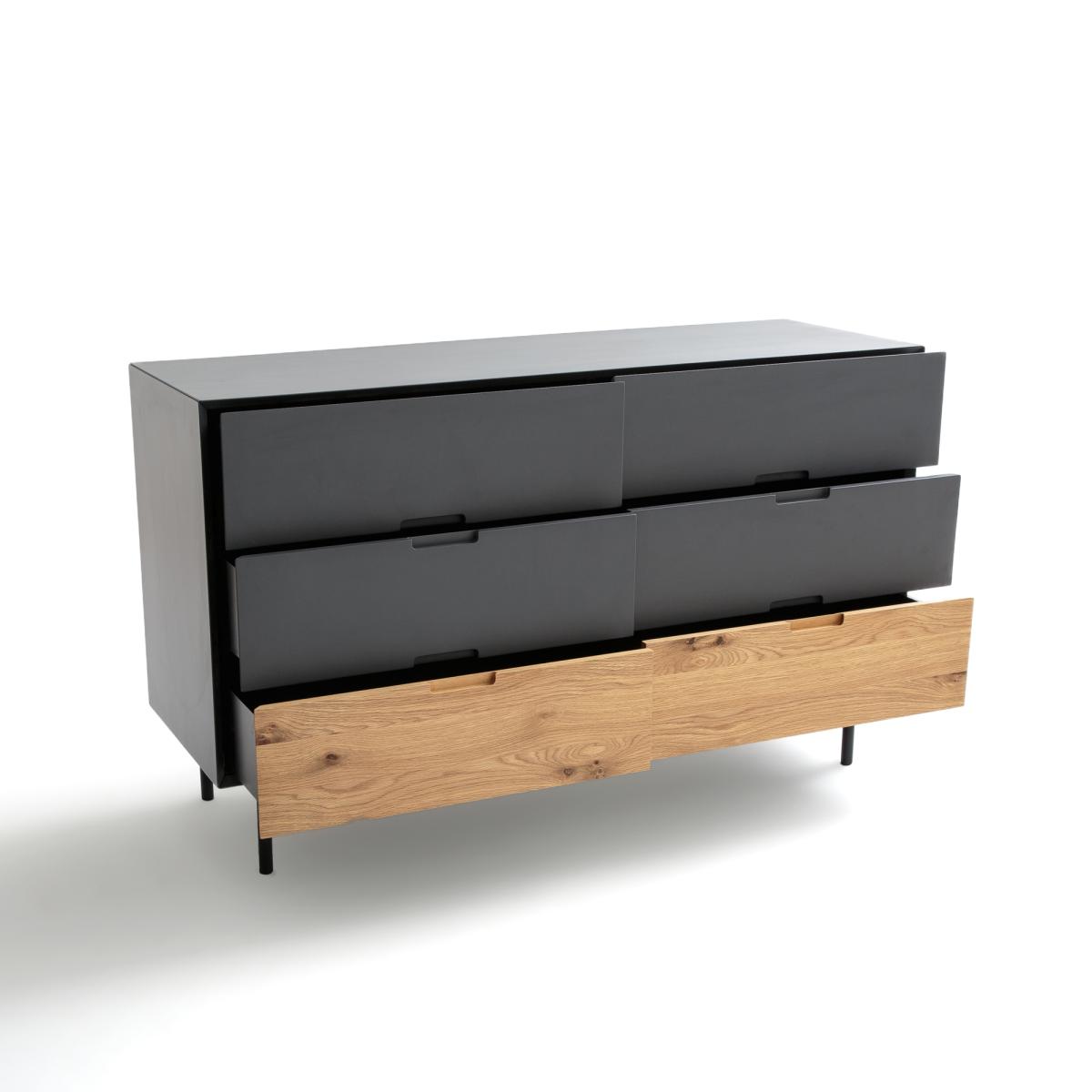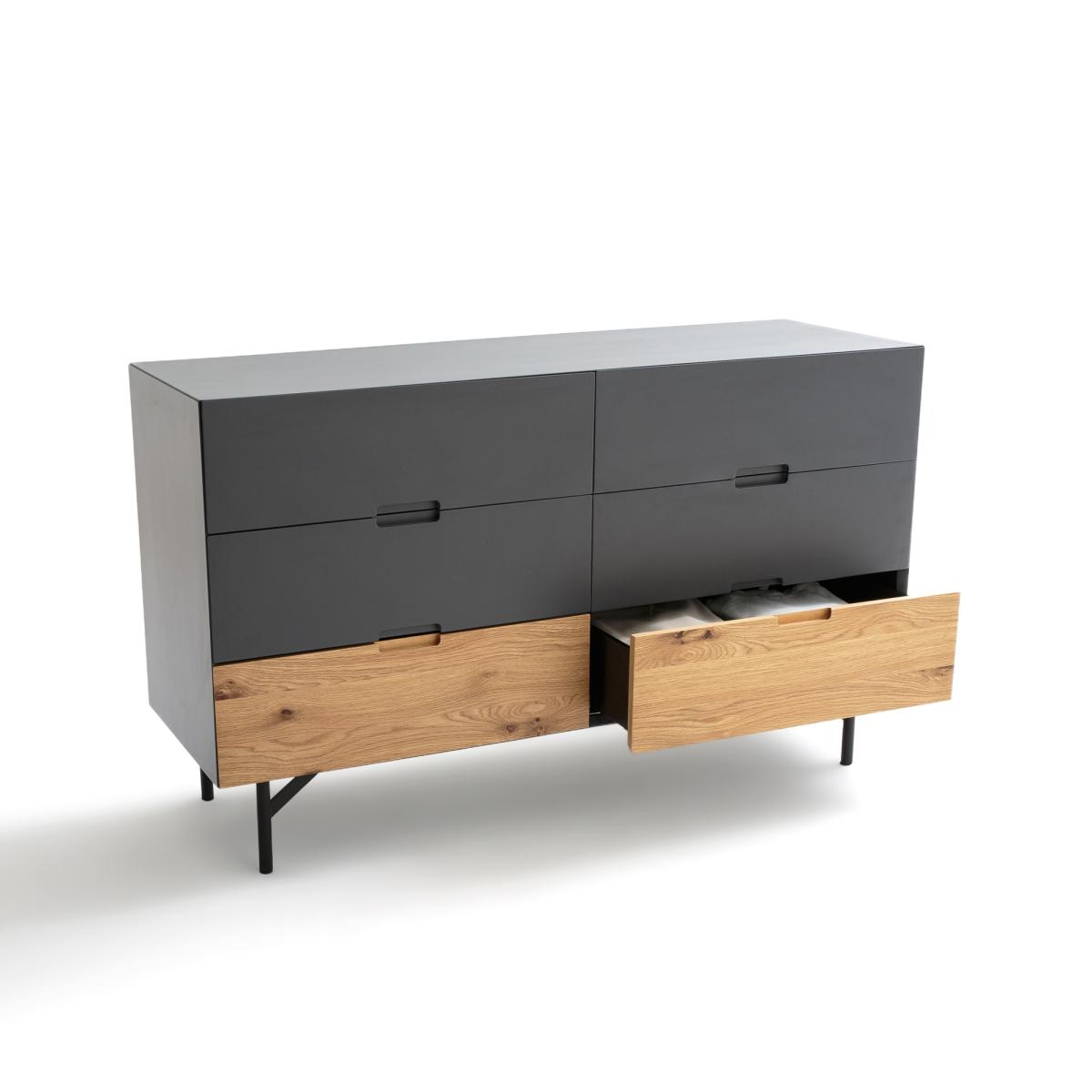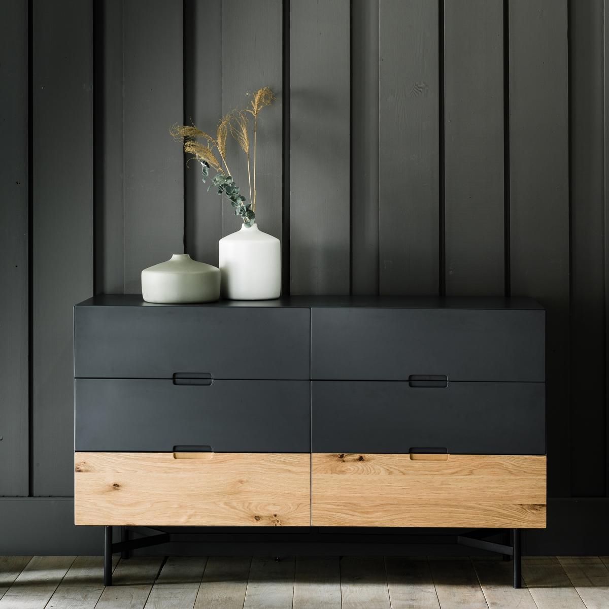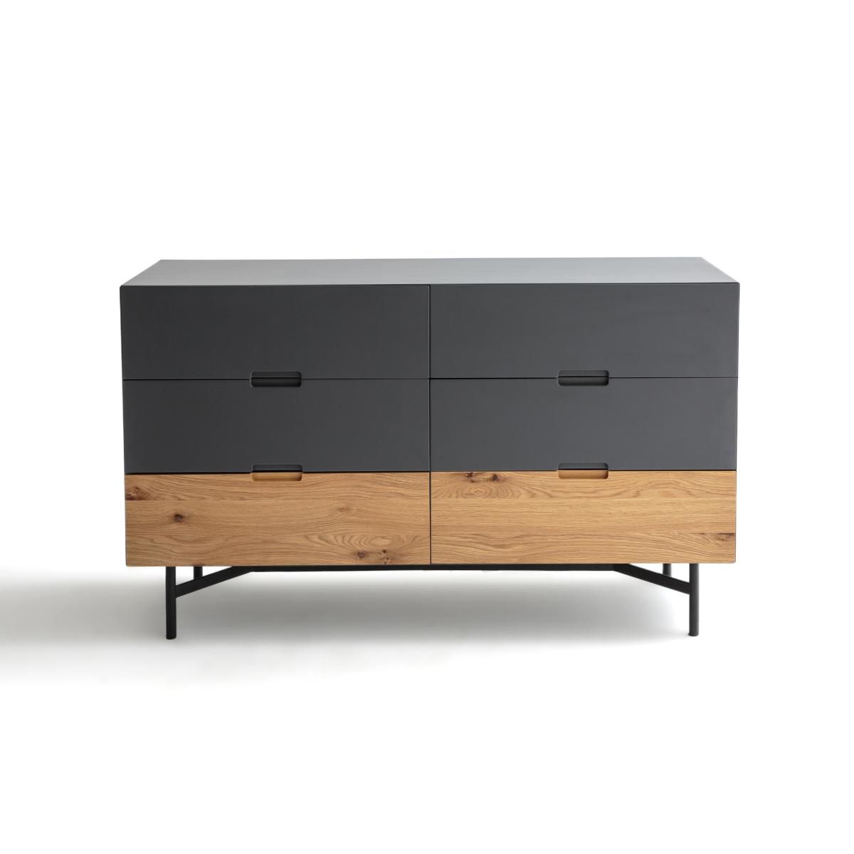 Contemporary inspiration for this pretty two-tone chest of drawers. Coated in a matte anthracite grey, it will bring modernity to your interior, as well as a touch of warmth with the fronts of its oak veneered lower drawers.