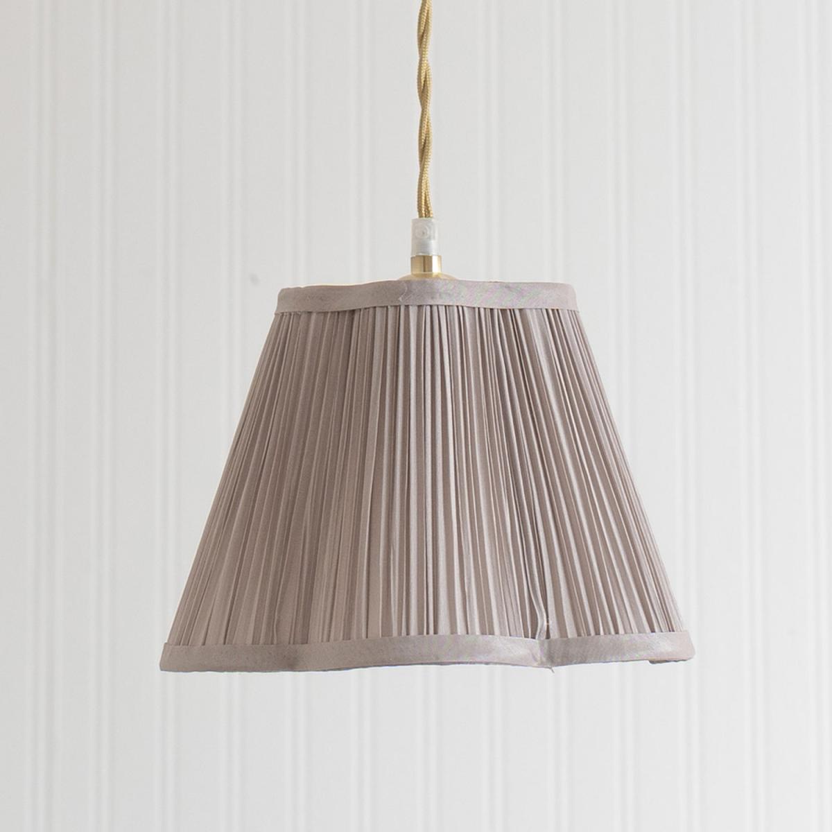 Level up your space with the Loralei small faux silk pleated shade! This little beauty brings all the elegance with its stunning pleats and on-trend scalloped edge. The luxurious faux silk fabric adds a touch of glamour, while the grey hue gives it a modern twist. Perfect for creating a chic vibe, whether it's perched on a table lamp in your bedroom or adding character to your living room. Let the Loralei shade bring a dash of drama to your home!