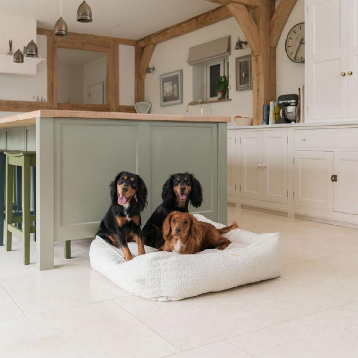 I love the Lords and Labradors Boucle Box Dog Bed for its cosy, understated style-its neutral tones and textured boucle fabric allow it to blend seamlessly into a variety of interiors, from rustic farmhouse kitchens to modern scandi schemes. It’s a practical piece that works well in open-plan living spaces or kitchens with a relaxed, family-friendly vibe. To style it effectively, place it under a kitchen island as shown for a lived-in feel, or in a corner of a study or sitting room as a dedicated spot for pets. Pair it with other natural or textured accessories for a cohesive look, and keep the space clutter-free to highlight the bed’s simplicity and comfort.