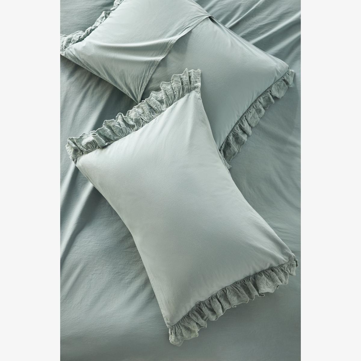 The Loren bedding collection brings a warm and welcoming ambiance to your sleep sanctuary with its finely embroidered detailing gracefully dancing along its ruffle trim. Crafted from breathable, lightweight cotton percale, it ensures a crisp and refreshing night's rest. * Set of two * 100% Percale Cotton * 200-thread count * Garment-dyed fabric for a softer feel * Embroidered ruffle trim * Machine wash cold; tumble dry low * Do not bleach * Iron on warm setting if needed * Made in Portugal