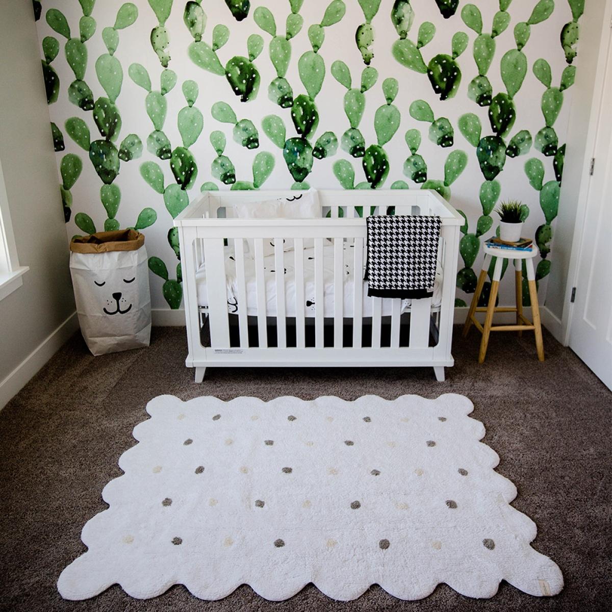 I love this little rug for its simple, playful design and practical features. Its washable nature makes it perfect for busy family homes, especially in kids’ rooms or play areas where spills are inevitable. The neutral biscuit colour with white polka dots adds a soft, fresh touch that easily pairs with both modern and traditional interiors. For styling, consider layering it over a larger, neutral carpet to create defined zones in a nursery or playroom, or let it stand alone in a small corner to introduce texture without overwhelming the space. Its scalloped edges add a subtle decorative detail that complements delicate or whimsical decor schemes. Overall, it’s a versatile, child-friendly piece that balances practicality with charm.