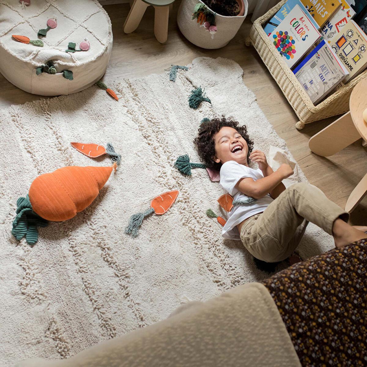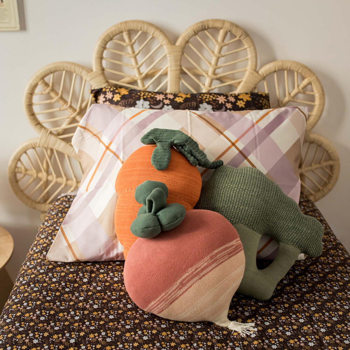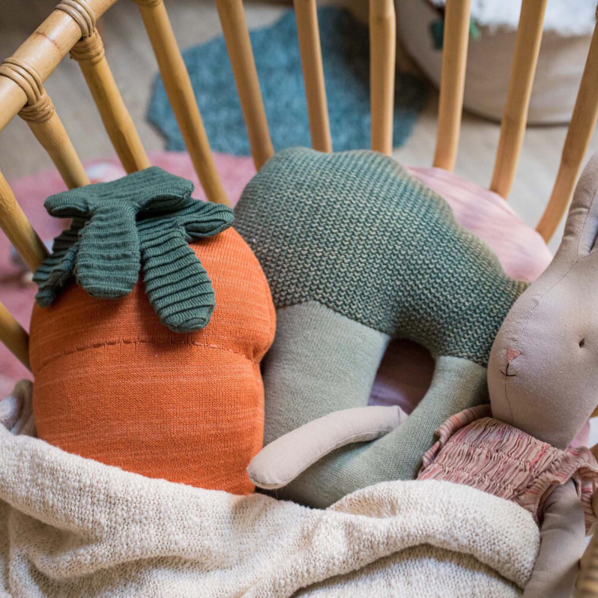 Your little one will love their vegetables thanks to Lorena Canals. Expertly made from cotton in the shape of a carrot, this soft knit cushion is filled with plump polyester and is the perfect addition to their playroom.