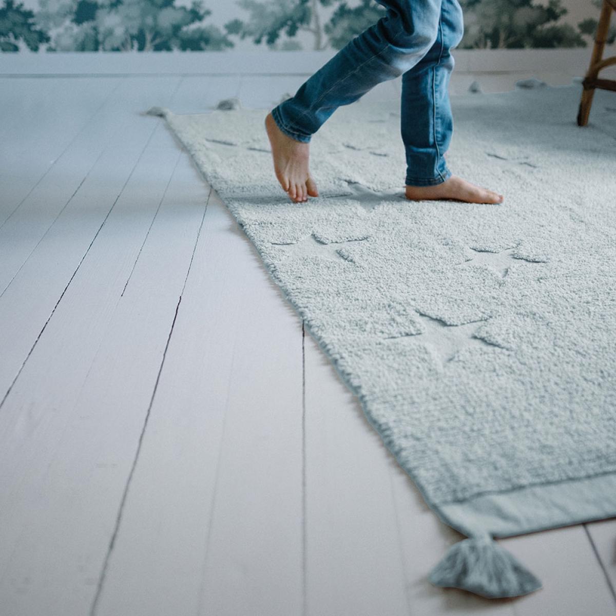 Available in a choice of soft pastel colours, the Lorena Canals Kids Washable Hippy Stars Rug will add a playful element to your little one's room. Crafted from eco-friendly cotton and naturally dyed, the love and attention to detail make every rug completely unique and special! Featuring a star pattern and hand-stitched tassel details, this gorgeous rectangular rug will standout for all the right reasons. Machine washable, it would be a practical addition too! Why not use it as a playmat or a wall hanging? Handmade in India by skilled craftspeople using traditional and environmentally friendly processes, the entire range of rugs by this fabulous Spanish brand is simply brilliant!.