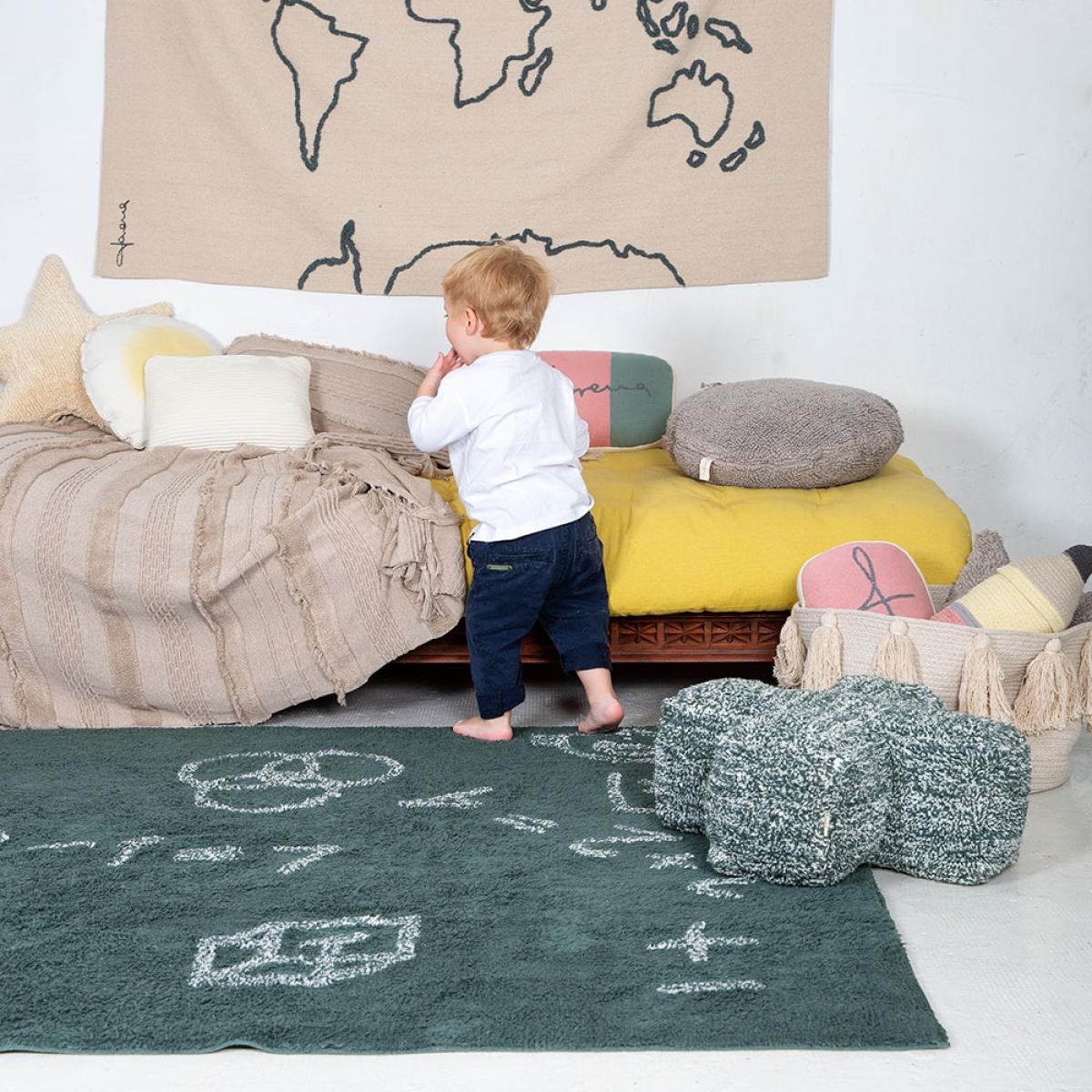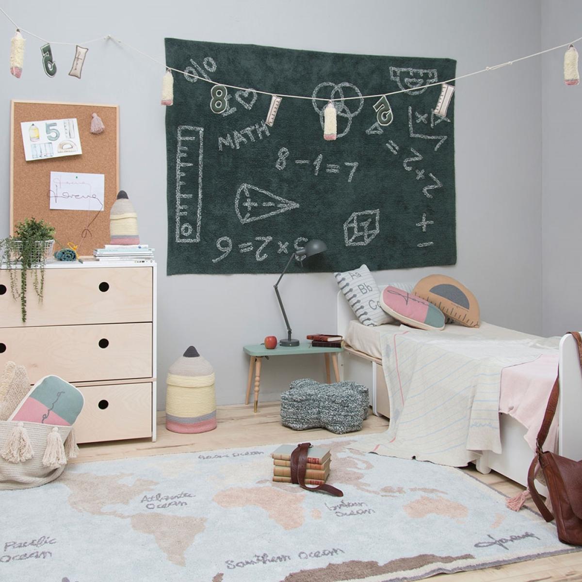 Perfect in the kids rooms or playroom, the Lorena Canals Kids Washable I love Math Rug will inspire your mini mastermind! Not just a rug, the machine washable design means you could use it as a playmat or why not pop one up as a wall hanging? Lovingly made from natural, recycled cotton with non-toxic dyes, this super soft rug is simply gorgeous. Part of the 'Back to School' collection, pair it with the Vintage map design and create an inspiring space for your inquisitive little ones. Handmade in India by skilled craftspeople using traditional and environmentally friendly processes, the entire range of rugs by this fabulous Spanish brand is simply brilliant! And with every rug sold, you'll be helping school disadvantaged children, now that truly is something special!.