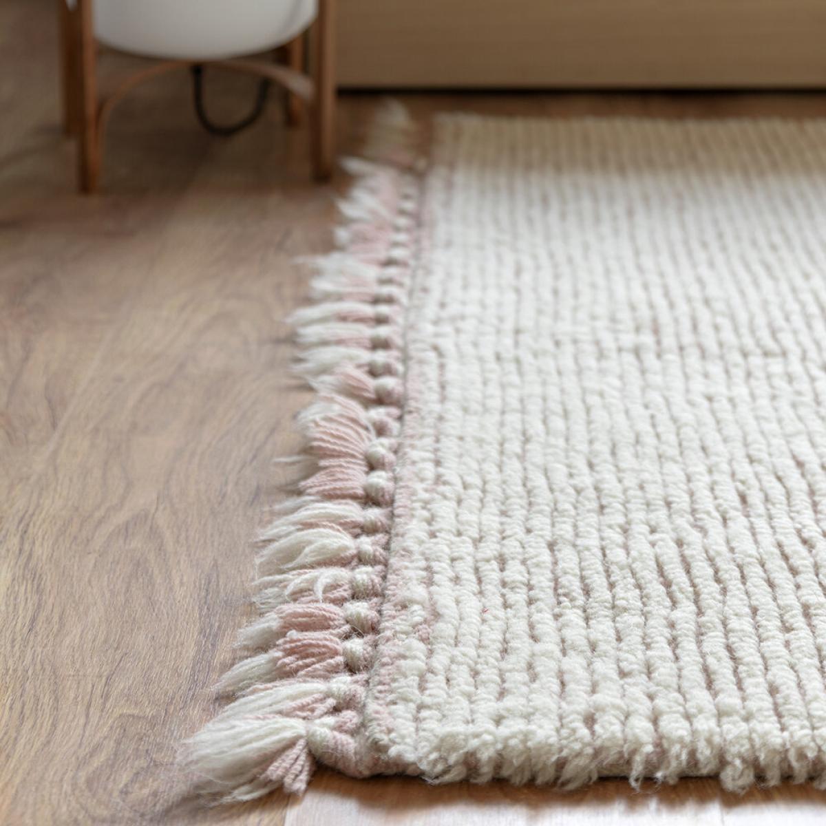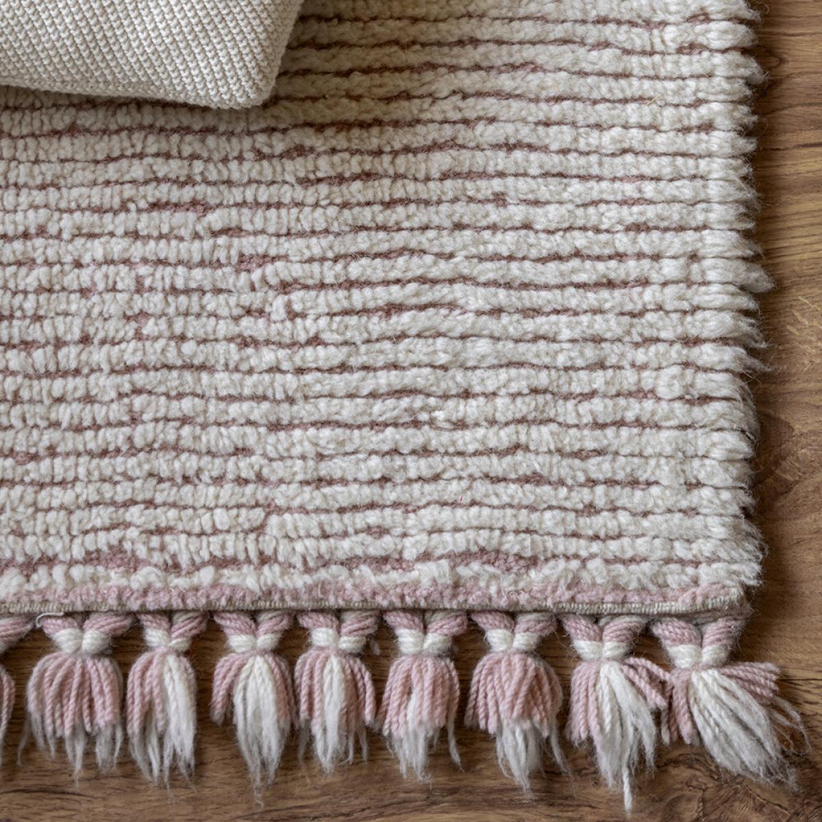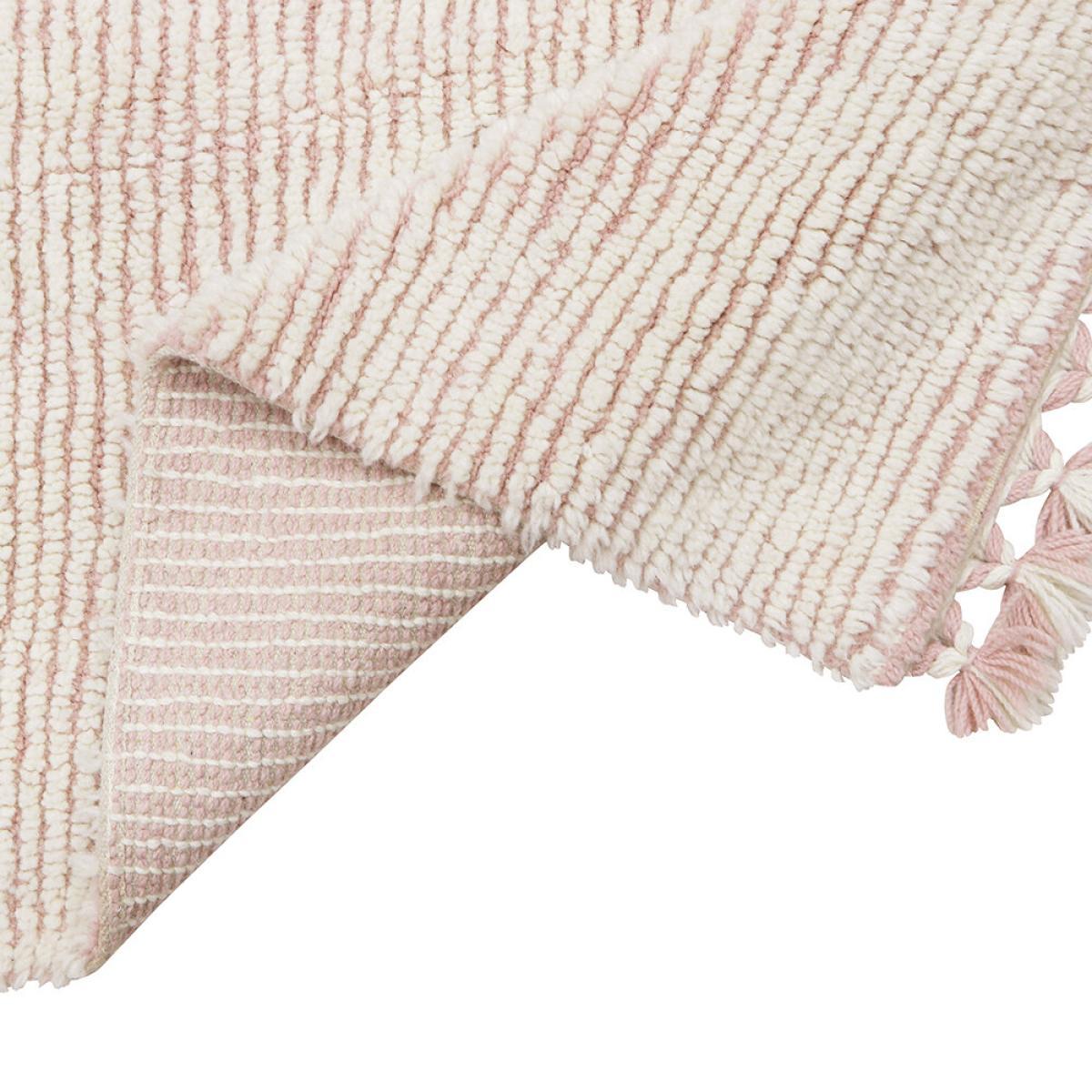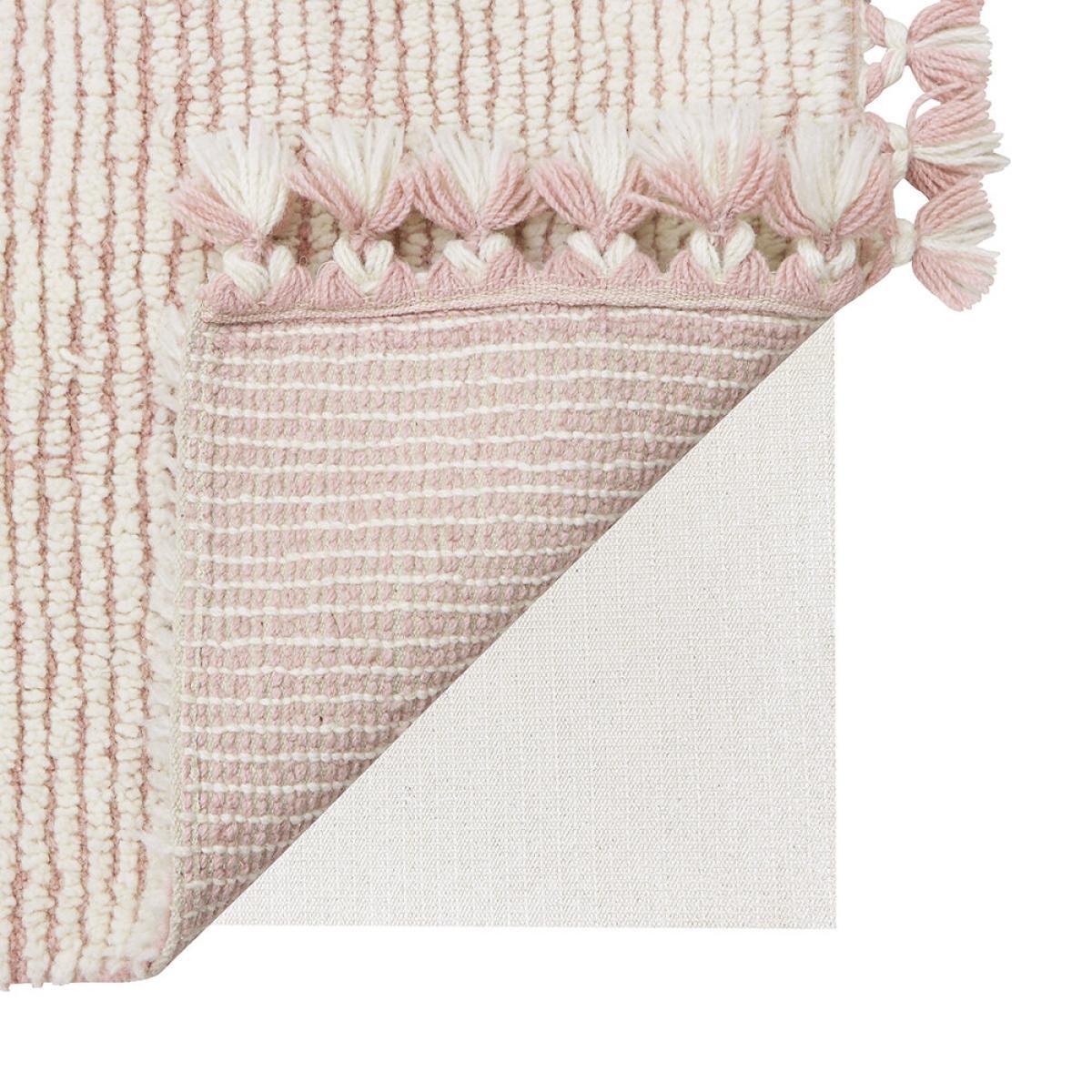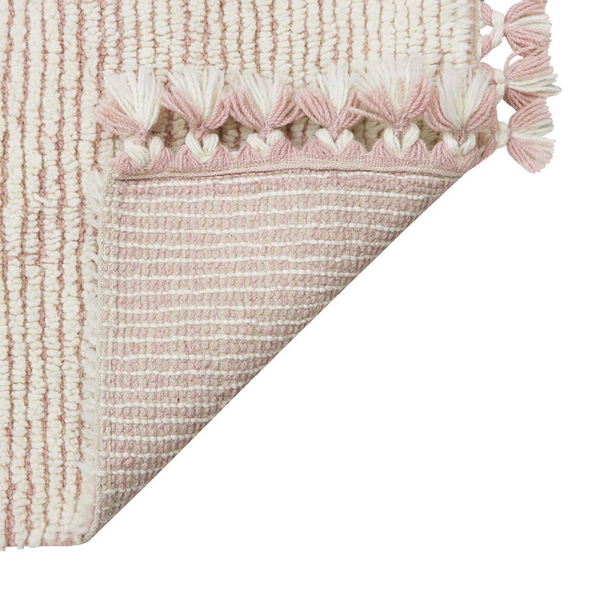 Transform your space with this Koa rug from Lorena Canals. Handmade in India from wool and recycled cotton, this rug features two layers of pink and white wool that have been tufted to create a subtle striped design and finished with tasselled edges. Machine washable, it’s perfect for use in any room of the home and can be paired with more accessories from Lorena Canals to complete the look.