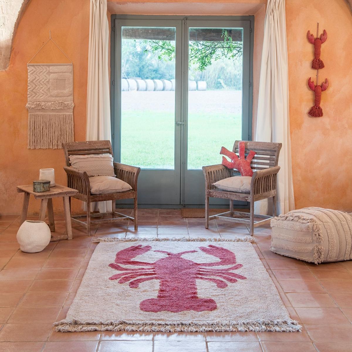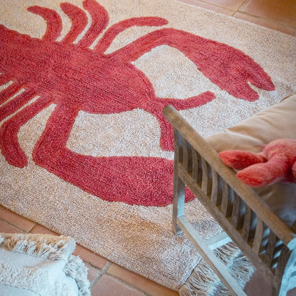 Part of the marine collection, the Lorena Canals Washable Lobster Rug will add a touch of whimsy to your home. Perfect for ocean themes or to add a little colour to the kids bedrooms, you'll love sinking your toes into the sand coloured cotton rug and pretending you're at the seaside! Finished with a bright red non-toxic dye and two rows of fringing, this unique design will standout wherever you decide to pop it. Machine washable - it doesn't just look and feel good, it's practical too! Handmade in India by skilled craftspeople using traditional and environmentally friendly processes, the entire range of rugs by this fabulous Spanish brand is simply brilliant!.