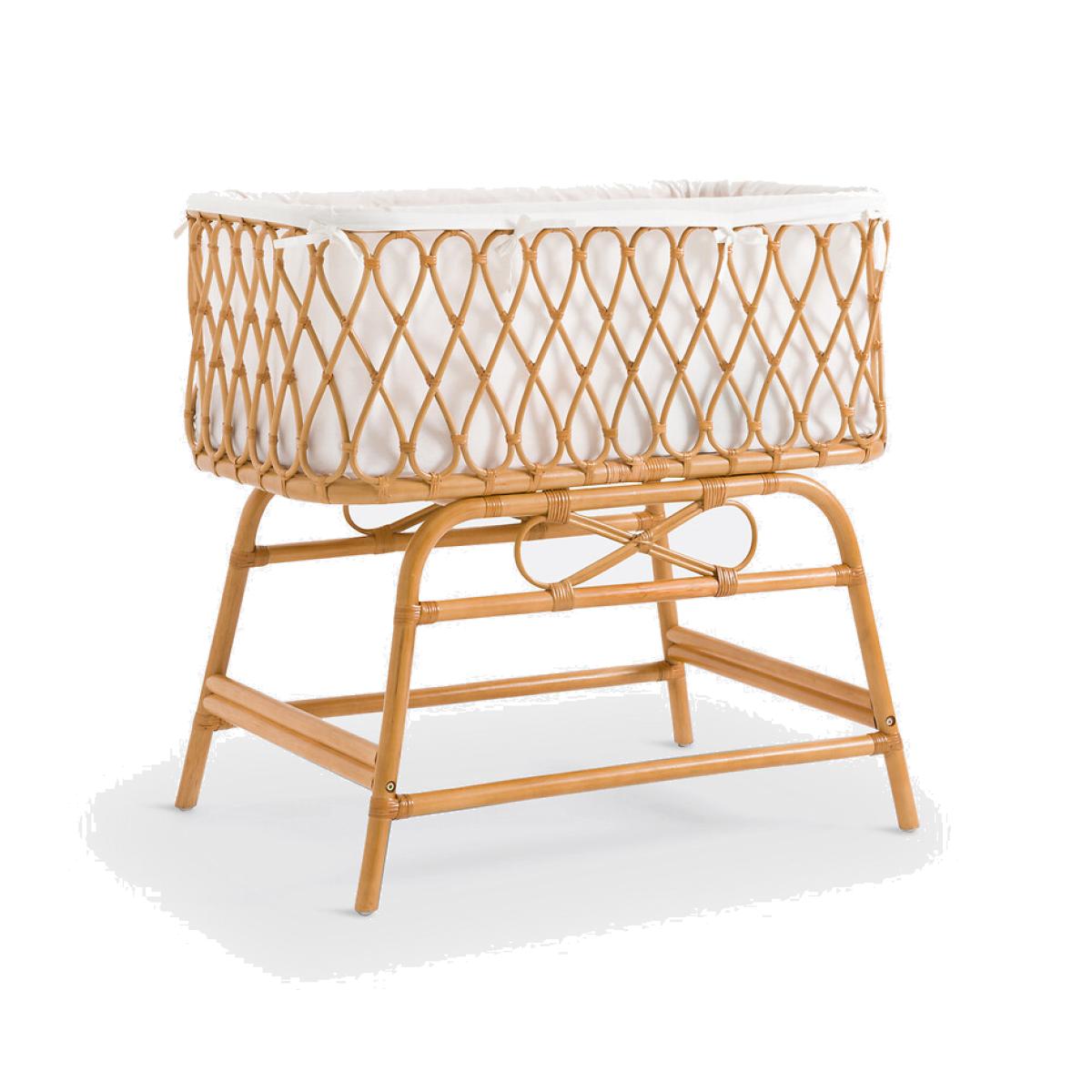 The Lorene cradle brings a note of softness to a child's bedroom. Its rattan cane structure adds a bohemian and vintage touch. Product Details • Structure and base in rattan • Sleeping area 50 x 90cm (mattress not included) • 100% cotton bed bumper (Oeko-Tex Standard certified)Warning • The cradle is not suitable for children who are able to sit, kneel or stand up independently • Do not use this product before reading the instructions for use. Quality Info • This product complies with current safety requirementsDimensionsOverall Bed • Width: 90cm • Height: 95cm • Depth: 56cm • Height of legs : 55cm Cot size • 50 x 90cmDelivery:. This product is sold ready to assemble. Dimensions and weight of parcel1 parcel • L103 x H62 x D72cm, 18kg