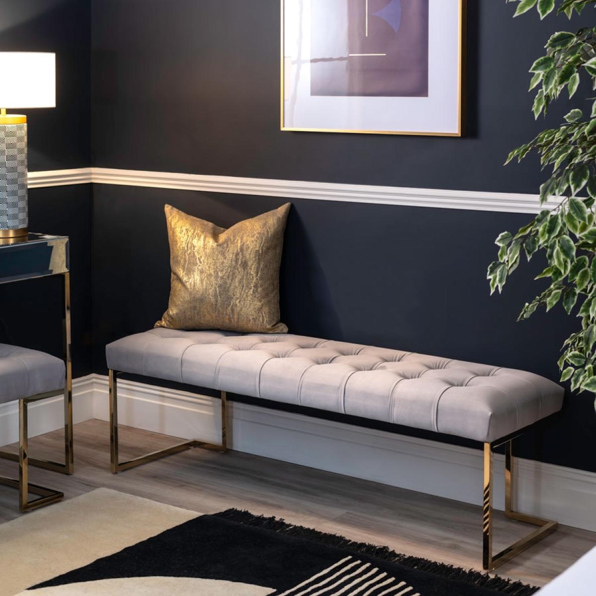 The Lorenzo Bench in Dove Grey offers a sleek, contemporary touch that works well in an array of interiors, from modern minimalist to more traditional settings. I love how its neutral tone and tufted upholstery add a subtle softness to a space, making it perfect as a hall or bedroom seating option, or even as a statement piece at the foot of a bed. The gold-toned legs introduce a touch of luxury and can easily be complemented with metallic accessories or warm-toned accents. For styling tips, I suggest pairing it with layered textures-like velvet cushions or layered rugs-to add depth, or using it as a versatile piece that can be dressed up with throws for different seasons or occasions. Its streamlined design makes it both practical and stylish, and it's definitely a smart choice for adding a contemporary edge without overpowering your decor.