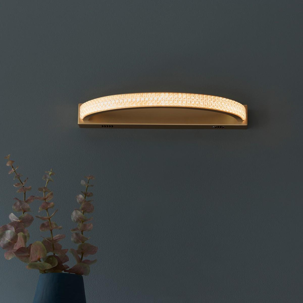 I love this wall light for its sleek, contemporary look combined with the luxurious satin gold finish, which adds warmth and sophistication to any space. Its crystal detailing provides subtle elegance, making it a versatile choice for modern and transitional interiors alike. This fixture works particularly well in living rooms, bedrooms, or hallways where you want to create a welcoming ambience without overpowering the decor. Practical styling tips include pairing it with minimalist furniture to highlight its refined details or installing it in multiples for a layered lighting effect in larger areas. Its warm white glow optimises comfort and complements neutral and rich colour palettes equally well.