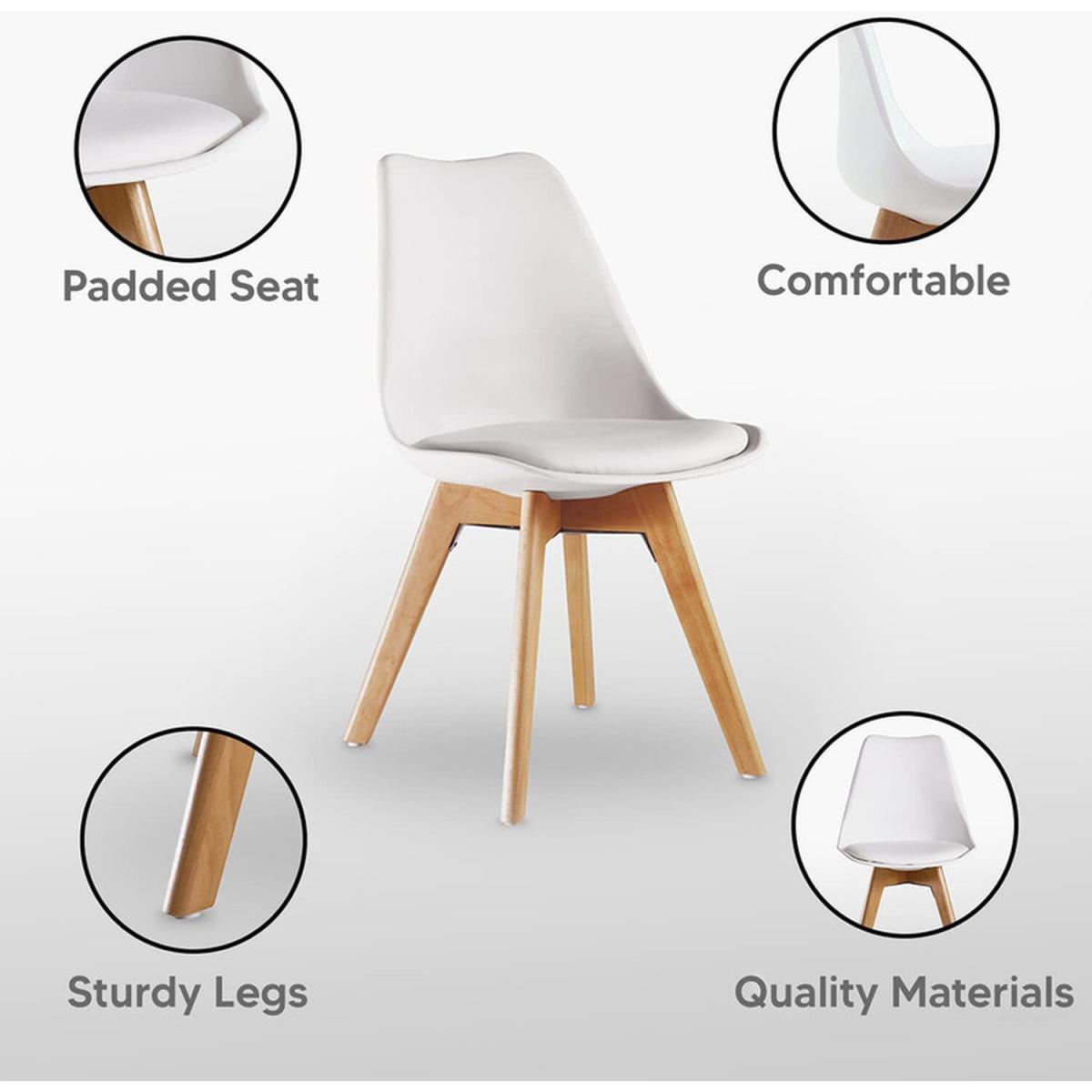 We are offering the Lorenzo Dallas Dining Set that includes the Scandinavian-inspired Dallas Table which has been designed with precision and a luxury finish to deliver an amazing dining experience. The sleek design of this kitchen table is giving it both functionality and a modern look with a touch of a rustic home feel. The unique legs style provide, not just sturdy support but, a stunning and unique design feature that will get your guests talking. The solid birch legs feature floor protectors to avoid scratching your floors. Combined with stylish and functional Lorenzo dining chairs. Features a robust ergonomically-molded polypropylene curved shell to provide support to your back or spine, Padded faux leather seat for a comfortable sitting experience. Supported by solid wood legs, complemented by a smooth waterfall edge and foot pads to protect your floors from scratches. Superior manufacturing provides durability that will withstand the test of time.