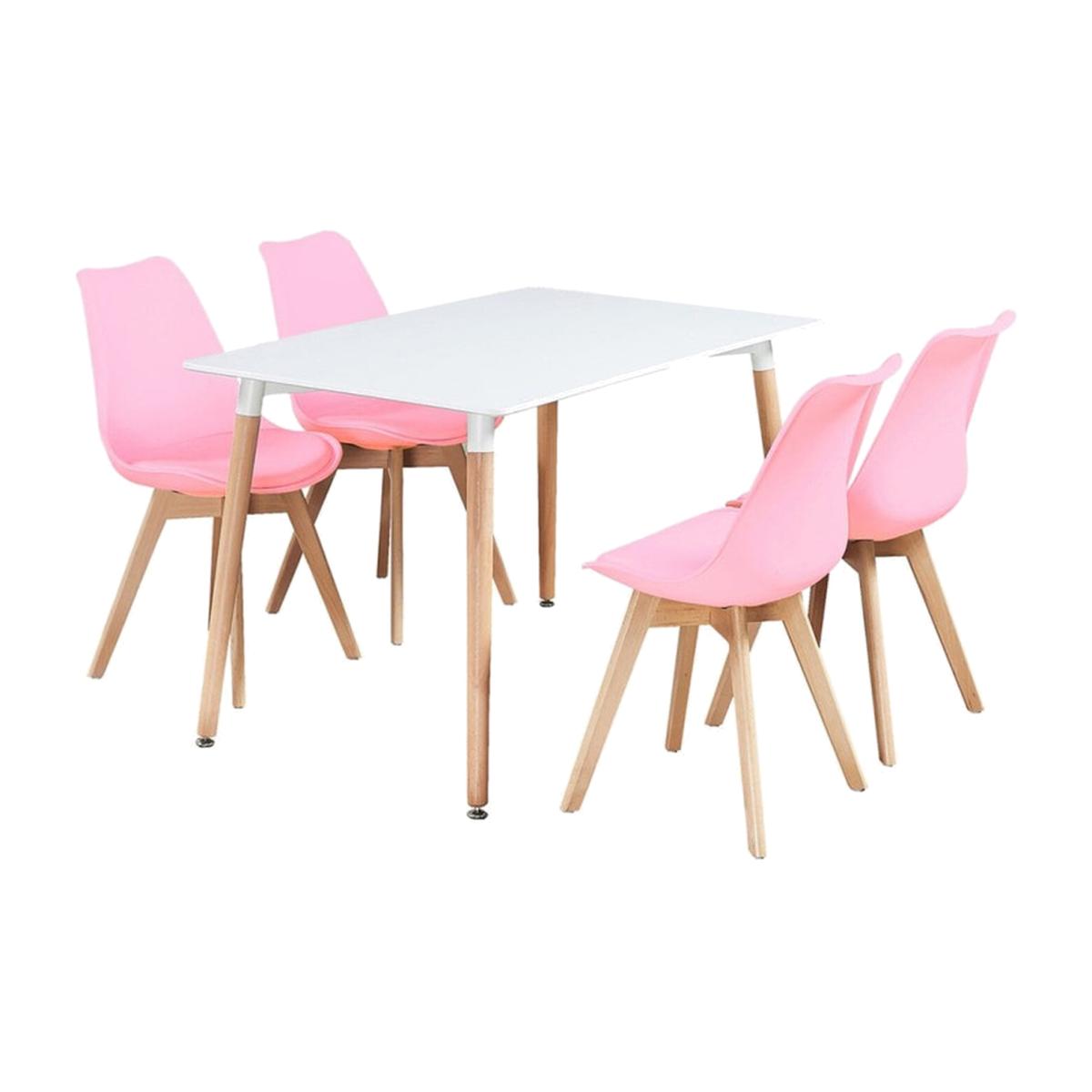 The highly recommended Scandinavian style Lorenzo dinette set includes a modern dining table and dining chairs set of 4. The padded kitchen set will match any room due to its classic design and will give a sophisticated touch to your furniture. The sturdy wooden table and kitchen chairs with padded faux leather seats offer a comfortable sitting experience. The legs feet are covered with end caps that protect your floor from scratching, in the meantime make this dinette set anti-slip, anti-noise and enhance its stability. Perfect for kitchen storage, dining rooms, living rooms, and many more. Hence, offers a practical and modern seating solution to your home and living space.