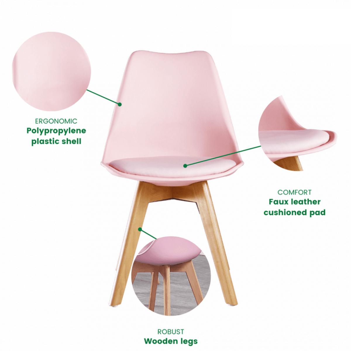 Adorn your home with stylish and functional dining chairs. This dining chair is the true epitome of Scandinavian living. Features a robust ergonomically-molded polypropylene curved shell to provide support to your back or spine, Padded faux leather seat for a comfortable sitting experience. Supported by solid wood legs, complemented by a smooth waterfall edge and foot pads to protect your floors from scratches. Superior manufacturing provides durability that will withstand the test of time. Enhance your living space with a versatile office chair that will provide you with the comfort you desire. Crafted with attention to detail and utmost perfection materials complimented by the overall stylish aesthetic - there really is no compromise on comfort or design.