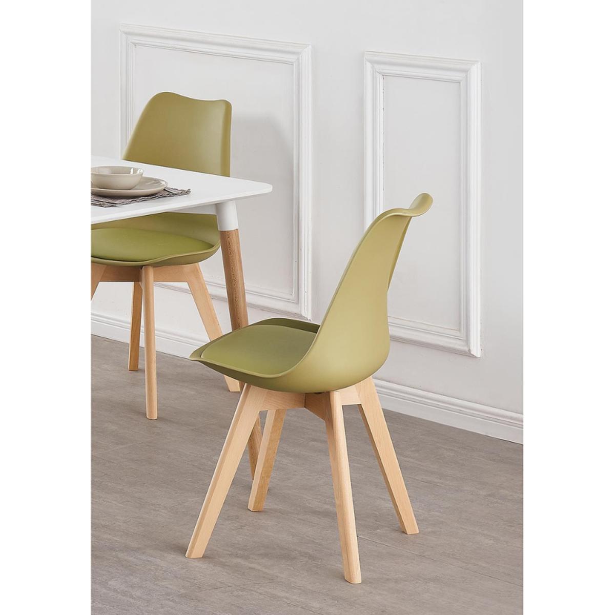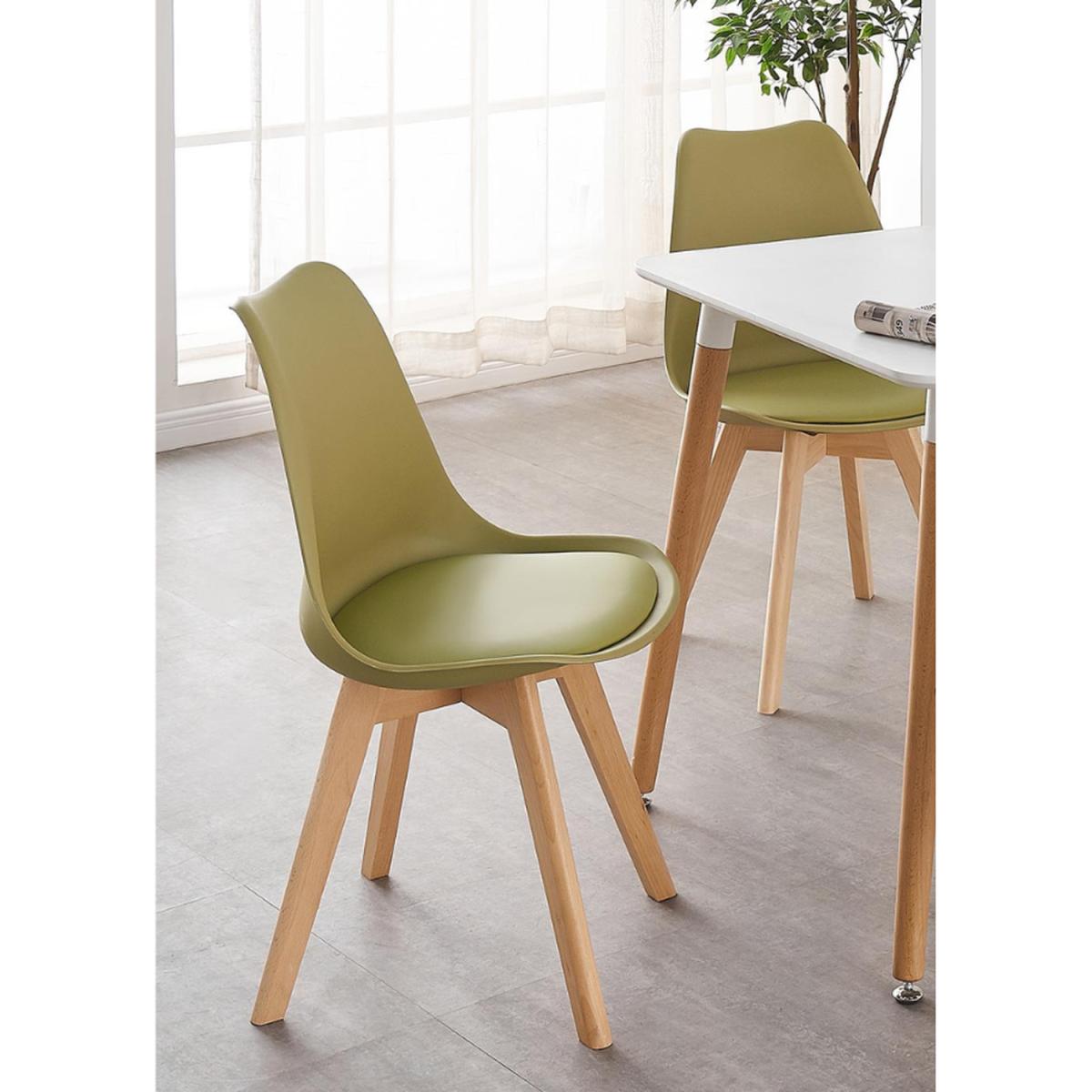 I love this green padded dining chair for its contemporary yet versatile design. Its fresh colour makes it a striking statement piece that can liven up a neutral dining room or add a splash of colour to a more eclectic space. It pairs well with a range of interior styles, from Scandi and modern minimalist to mid-century inspired decors. Practical styling tips include mixing it with natural wood tables for warmth or contrasting it with darker tones for a more dramatic look. Its padded seat also makes it comfortable for extended dining, while the clean lines keep it adaptable and easy to incorporate into various interior themes.