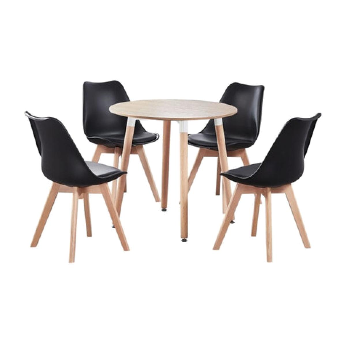 We are offering the round Lorenzo Dining Set that includes the round Table, which delivers superior comfort and durability and makes it perfect for everyday use. Solid wooden legs ensure that the table is sustainable and long-lasting. Its luxury yet simple design will elevate your dining space to a new level. A perfect table for everyday family mealtimes, as well as an excellent table for grownup dinner gatherings. Also, the dinette table offers a brilliant surface solution for placing drinks, food, and snacks with its perfect size making it even easier to place anywhere you wish without cluttering your room. Combined with stylish and functional Lorenzo dining chairs. Features a robust ergonomically-moulded polypropylene curved shell to provide support to your back or spine, Padded faux leather seat for a comfortable sitting experience. Supported by solid wood legs, complemented by a smooth waterfall edge and foot pads to protect your floors from scratches. Superior manufacturing provides durability that will withstand the test of time.