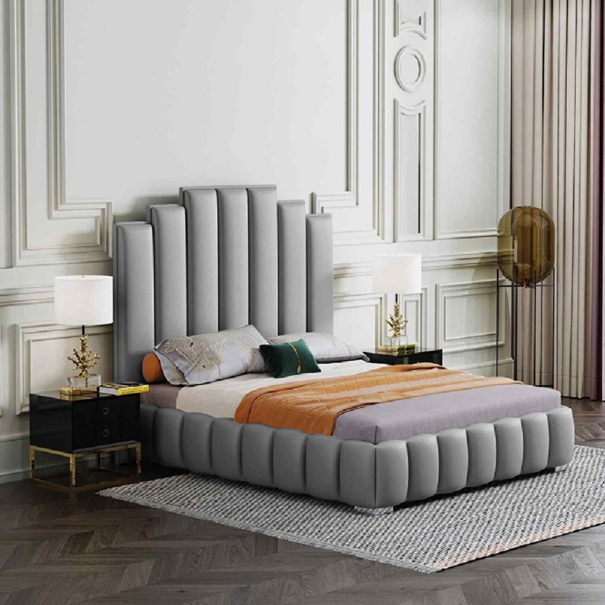Lorenzo Upholstered Plush Velvet Bed Frame - Grey / Small Double
