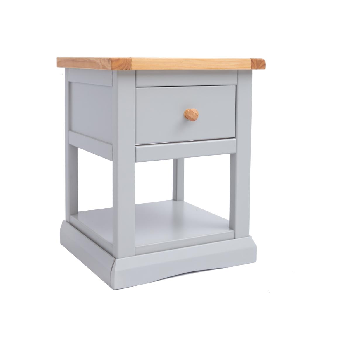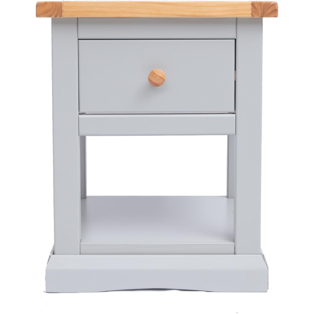 Our Loreo collection has a simple but pleasing design and is produced by our skilled craftsmen to the highest standards using responsibly sourced wood and veneers. All tops are made using a combination of solid pine wood and veneers and are carefully hand-waxed giving them a great look. The body is finished with high-quality eco-friendly water-base paint in a light grey colour. These attributes combined with a simple construction for easy assembly make it a great value product to be taken home today. This one-drawer bedside with a shelf offers you the ideal mix of closed storage and open space to house your favourite reading material or display a favourite moment. Why not choose a pair - one for each side of the bed.