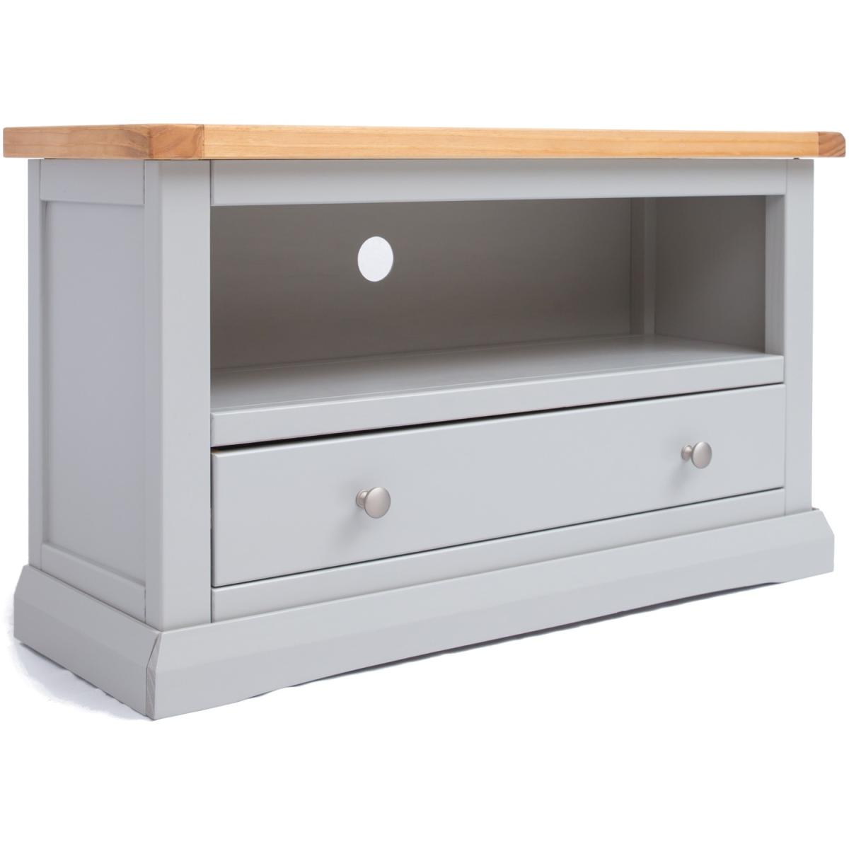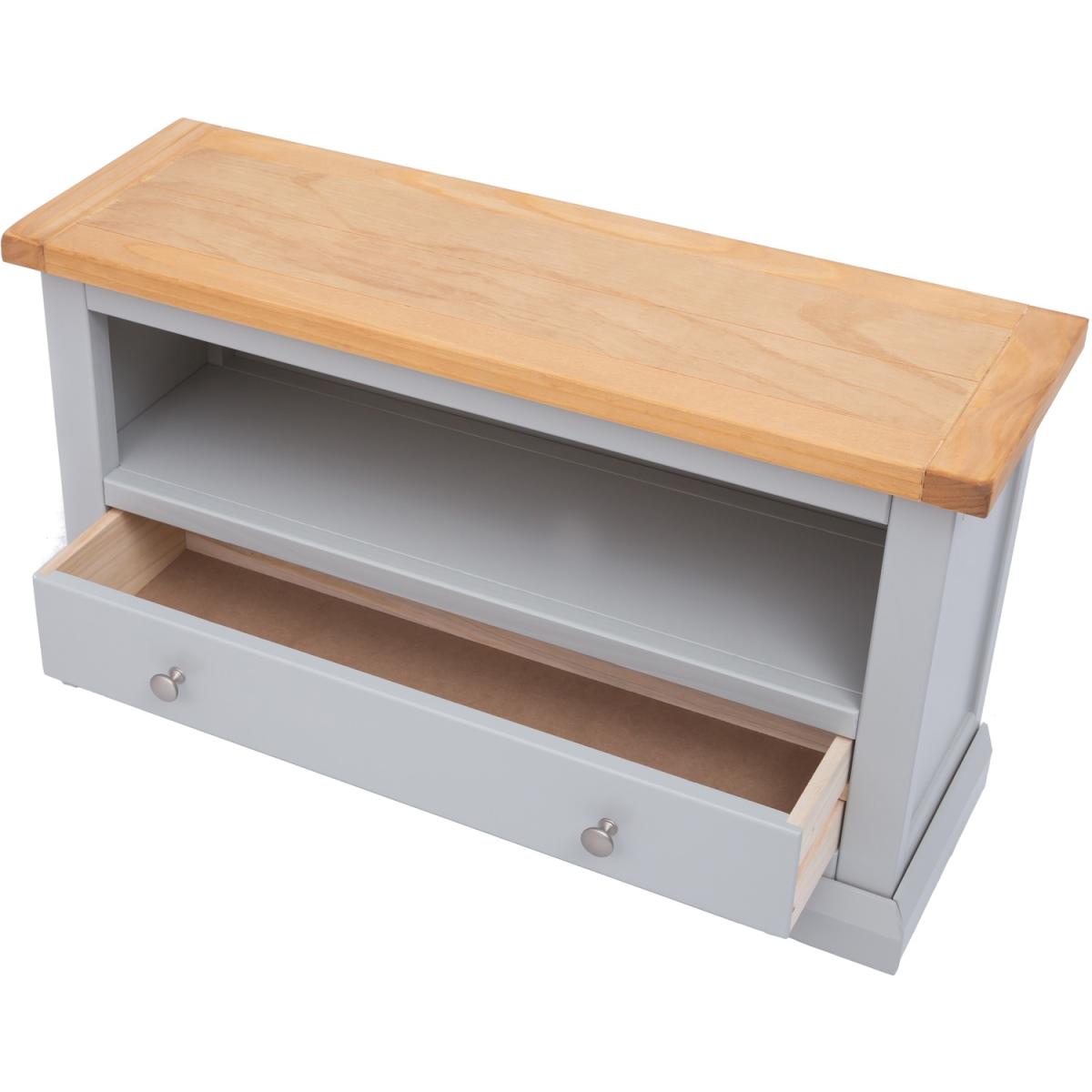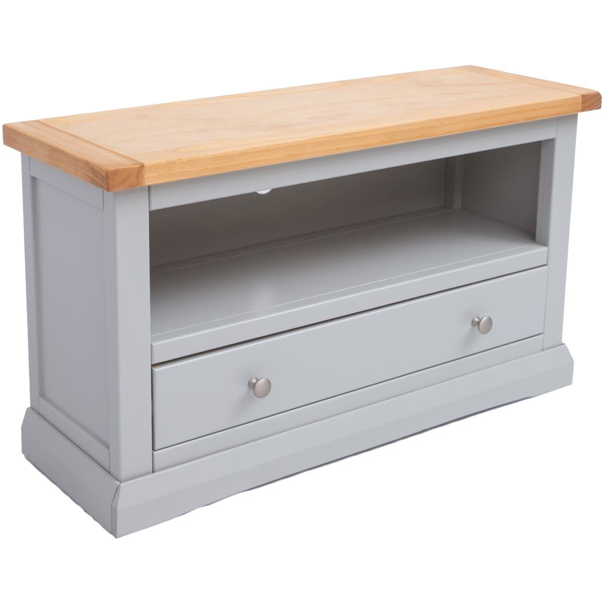Our Loreo collection has a simple but pleasing design and is produced by our skilled craftsmen to the highest standards using responsibly sourced wood and veneers. All tops are made using a combination of solid pine wood and veneers and are carefully hand waxed giving it a great look. The body is finished with a high quality eco-friendly water base paint in an light grey colour. A compact and stylish TV unit with a full width drawer at the bottom to store your remote controls and games consoles out of the way. Above the drawer is an open space for digital boxes or players, access for wiring is made easy by the cable holes cut out in the back of the unit. There is plenty of space on the top for your TV to be placed. The two drawers below are deeper and ideal for storing underwear or accessories. These attributes combined with a simple construction for easy assembly makes it a great value product to be taken home today.