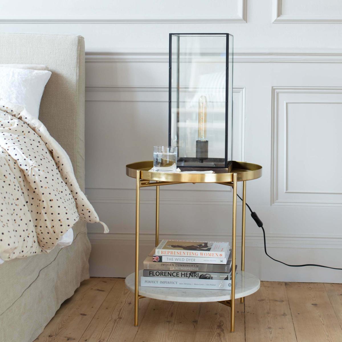 I love the Loretta side table for its elegant combination of marble and gold, which instantly elevates any living space. Its versatile design works particularly well in both contemporary and classic interiors, adding a touch of sophistication without being too formal. Practical styling tips include pairing it with a statement lamp or a small stack of coffee table books for added visual interest. Its dual surface makes it functional for displaying accessories or a drink, while the lower shelf provides useful storage. This piece is ideal for living rooms, bedrooms, or even as an accent table in a hallway. Its sleek profile makes it adaptable for smaller spaces or as part of an eclectic mix of furnishings.