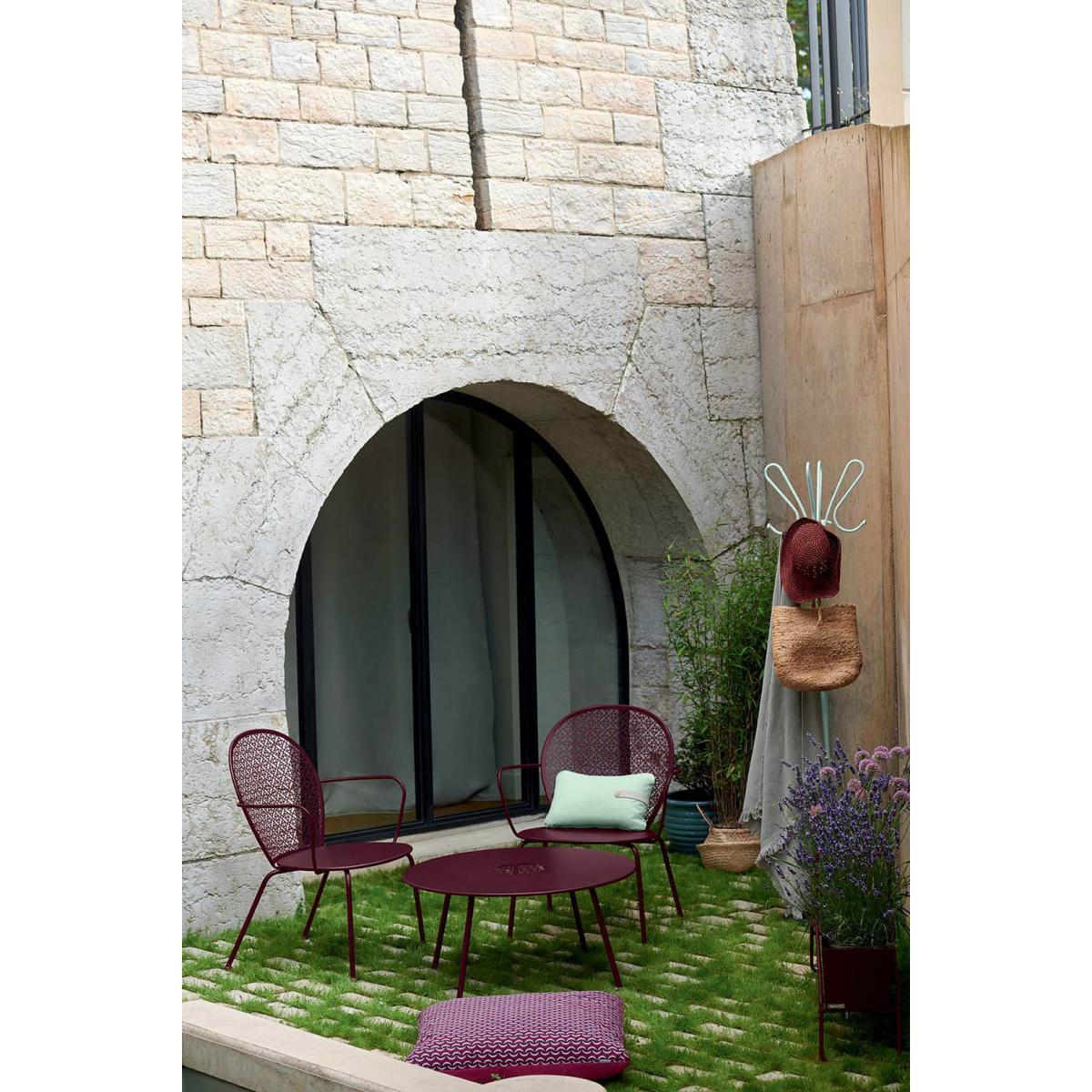 We're revisiting the classics! The Lorette collection has an impact on both hearts and minds. It has been created by Frédéric Sofia, designer and great friend of the brand, and famous creative behind another of its iconic collections: Luxembourg. Lorette is characterised by a unique and subtle pattern, which has become a signature, almost a monogram. A flower with four petals, representing an opening up to the world. An openwork patter which embodies our country homes with poetic ambiance. Design from the 1950s/1960s is also evoked, with slender lines and rounded corners. Its influences? Numerous. It's personality? Strong. Although its unique style is what catches attention initially, the practicality, technical excellence and sturdiness keep that attention. The pattern on the backrest, finely chiselled using later-cutting techniques, is actually extremely solid, and the Lorette low chair can be stacked for easy storage. Plus, it's anti-corrosion treatment means it can withstand any weather.