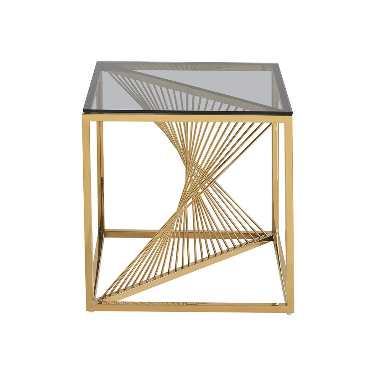 Space Saver: This compact design fits easily in narrow looks and small spaces like the sofa side. Selected Materials: Our end table is constructed of CARB-compliant MDF and heavy-duty metal hardware, which ensures its good sturdiness and durability. Simple Assembly: the product needs to be assembled, the package comes with product assembly instructions, product parts have the corresponding number, can help you quickly assembled. The side table can be used both as a sofa side table and as a bedside table, suitable for anywhere in the living room, bedroom, balcony, study, etc., providing more storage and saving more space in a narrow space. Size: 550*550*550mm - 8mm smoke Blue Tempered Glass Golden Stainless Steel