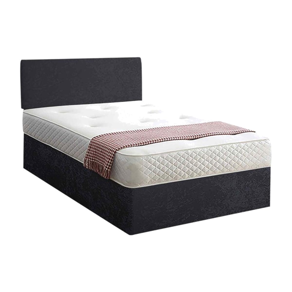 Loria Divan Bed Set with Headboard and Mattress - Crushed Fabric, Non Storage - Black / Small Double