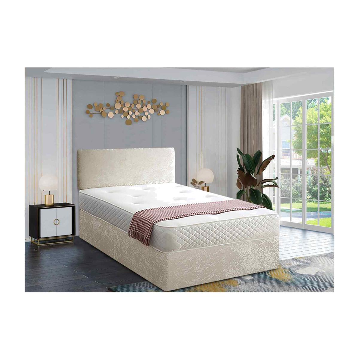 A contemporary style for any bedroom setting. This affordable yet quality divan bed comes with a 20 inch headboard, base and a memory spring mattress. This bed is available in 6 sizes and various fabrics and colours. There are storage options of having 2 drawers. The mattress is a 13.5 Open Coil Bonnell spring with a layer of responsive memory foam, hand tufted as it secures the classic mattress fillings and enhances the performance and life span. A medium to firm mattress with a depth of 10 inches this amazingly priced bed set represents great value for money.
