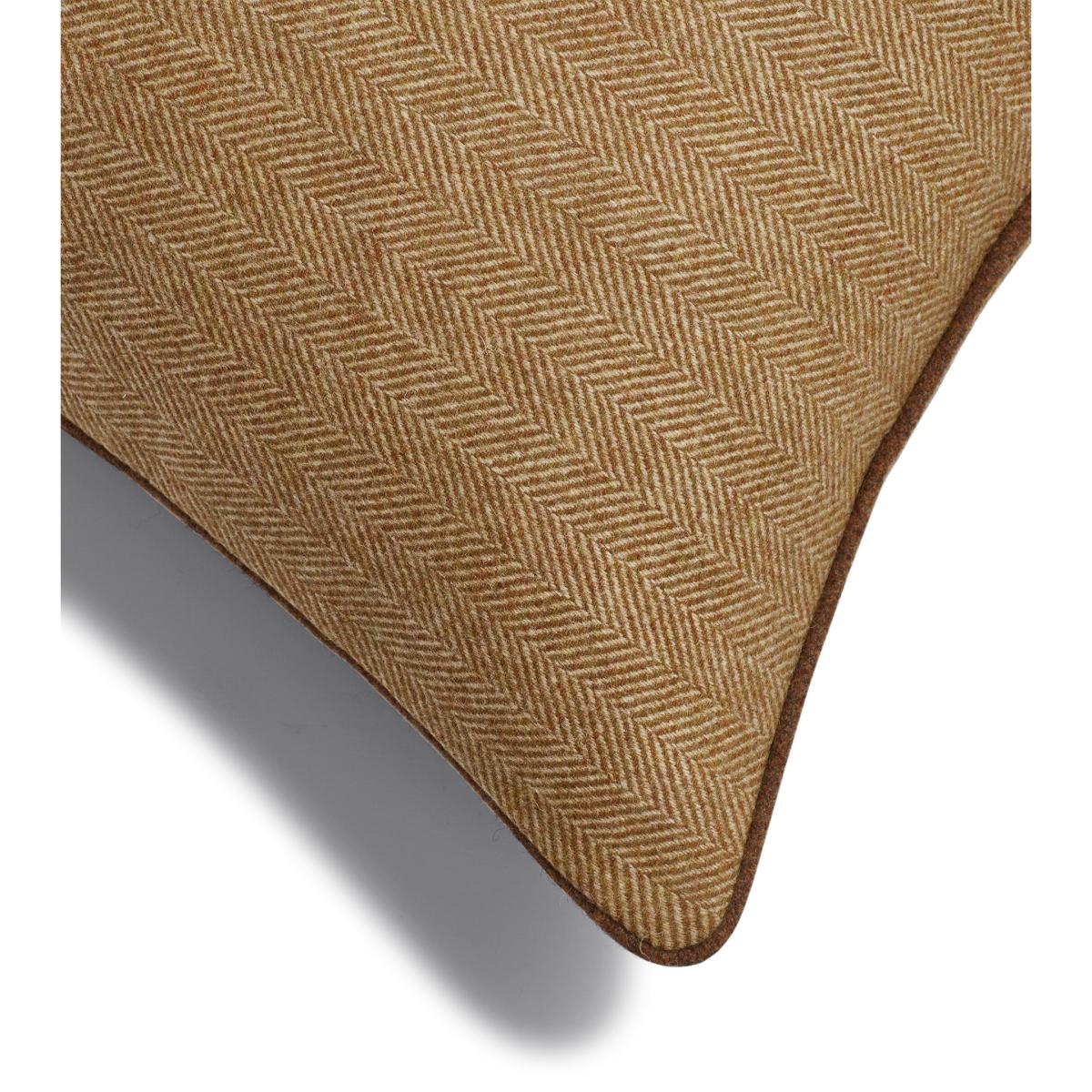 Our Lorna Cushion Cover is made from high-quality New Zealand merino wool. This material is known for being the very best, because the climate offers the perfect conditions for rearing sheep, which results in the longest spun yarns available. The yarns are spun and dyed for weaving in Yorkshire to achieve the rich mustard yellow tone.