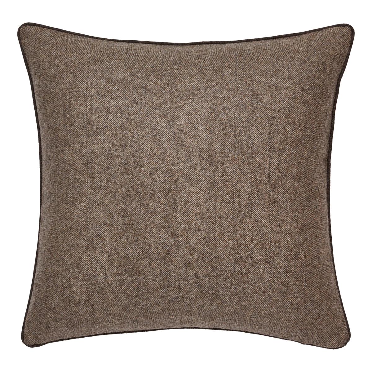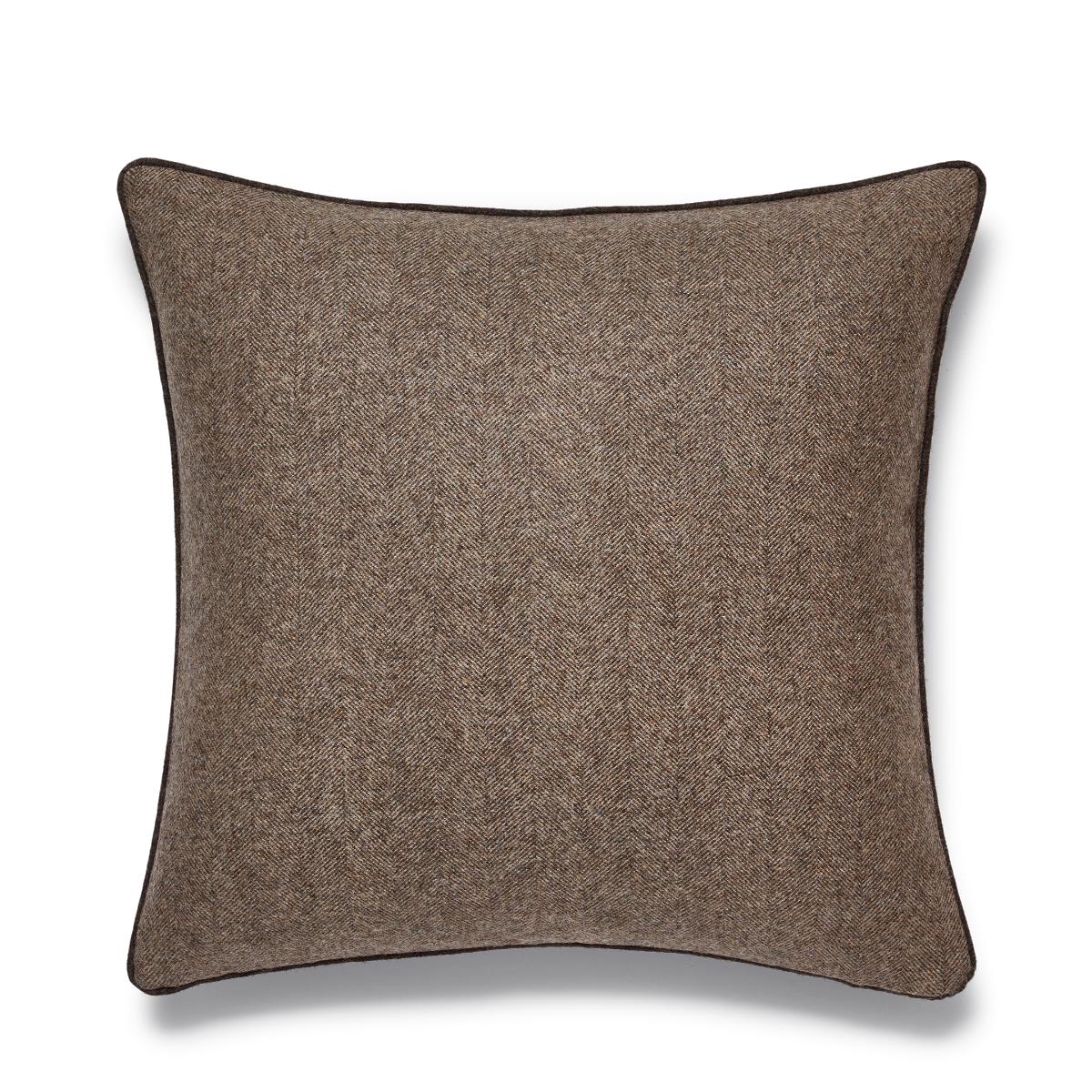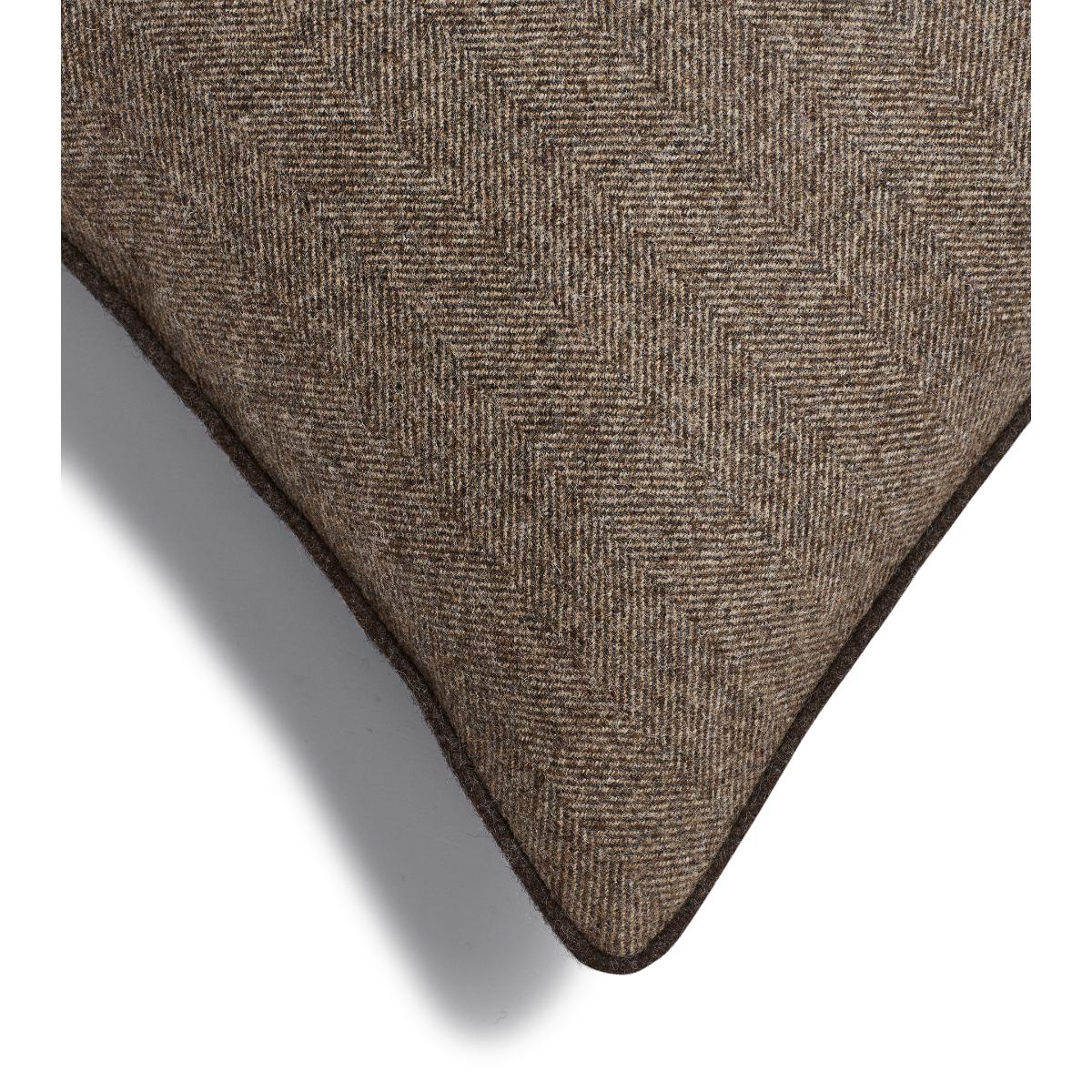 Our Lorna Cushion Cover is made from high- quality New Zealand merino wool. This material is known for being the very best, because the climate offers the perfect conditions for rearing sheep, which results in the longest spun yarns available. The yarns are spun and dyed for weaving in Yorkshire to achieve the herringbone pattern.