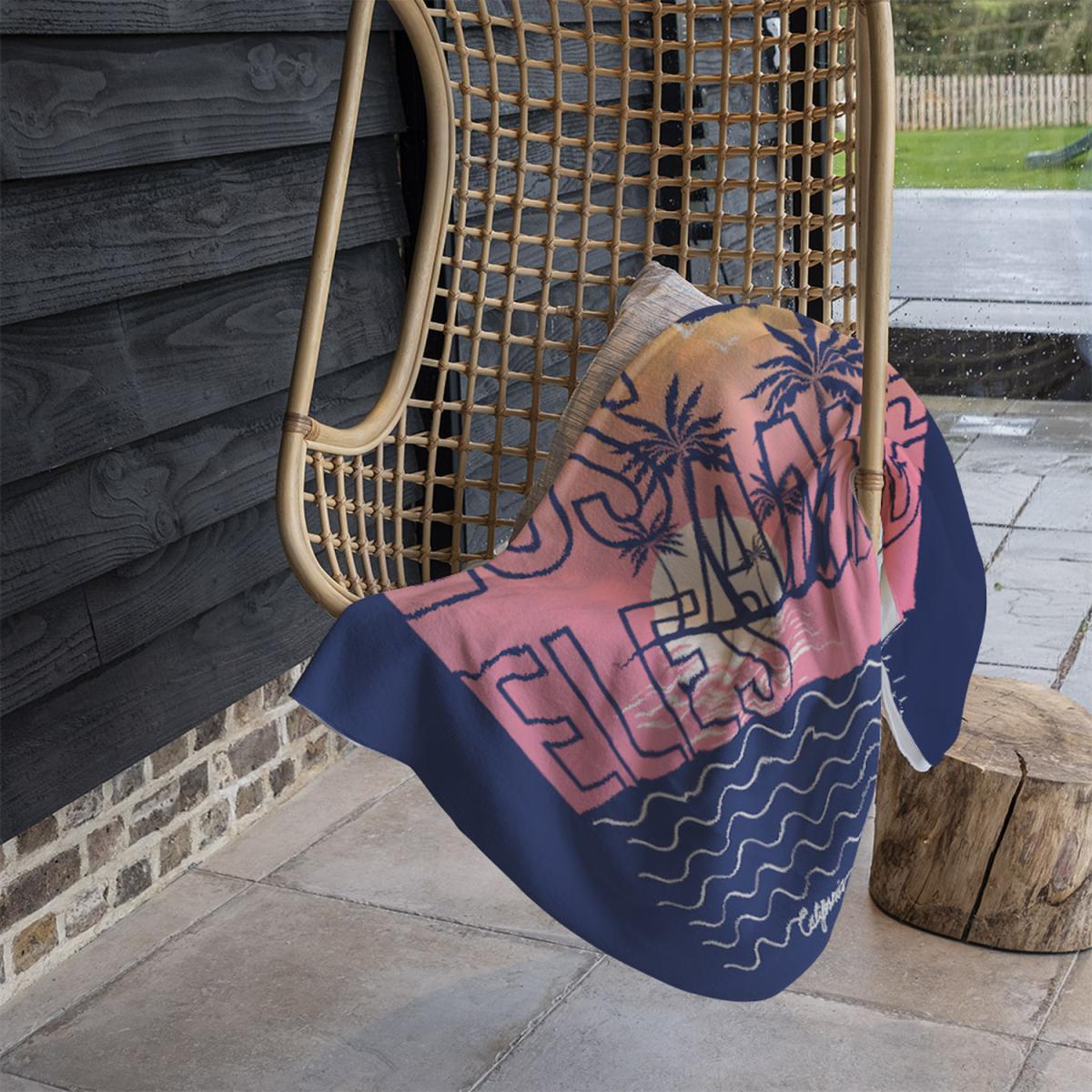 I love how this throw brings a vibrant, laid-back vibe to a room, making it perfect for casual living spaces or coastal-inspired interiors. The blue palette and sunset-inspired design lend themselves beautifully to modern or even boho decor, adding colour without overwhelming the space. Practical styling tip? Fold it neatly over a sofa or armchair, or drape it across a bed to introduce colour and texture effortlessly. It works particularly well with neutral tones or natural materials like rattan and wood, giving a relaxed but curated feel to your interior.