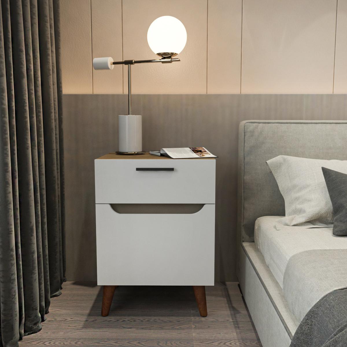 Losso nightstand is practical and modern. With 77.5 height and 45 cm width, it is a functional and modern one. Its Oud Oak and White color will fit any bedroom. A cabinet, a sliding drawer and a tabletop enable you to place your belongings within your arms reach. You can put your decorative items or night lamp on the top surface of the nightstand. The solid wood legs makes it attractive, sturdy, and durable. It has an elegant metal handle on the drawer. You will enjoy using this piece of accent furniture for a long time. The nightstand is made of 18mm thick quality melamine coated particle board and banded with first-class PVC edge banding tape. Metal parts are coated with scratch and impact-resistant industrial static paint. Overall, it is manufactured using eco-friendly and health-friendly TSE certified materials. The product will be delivered to the customer in the original package as disassembled. It is designed to be assembled by the customer easily using simple household tools like a power drill. Assembly instruction and installation hardware are included in the package. For fast and error-free installation, product parts are numbered with stickers in accordance with the assembly guide.