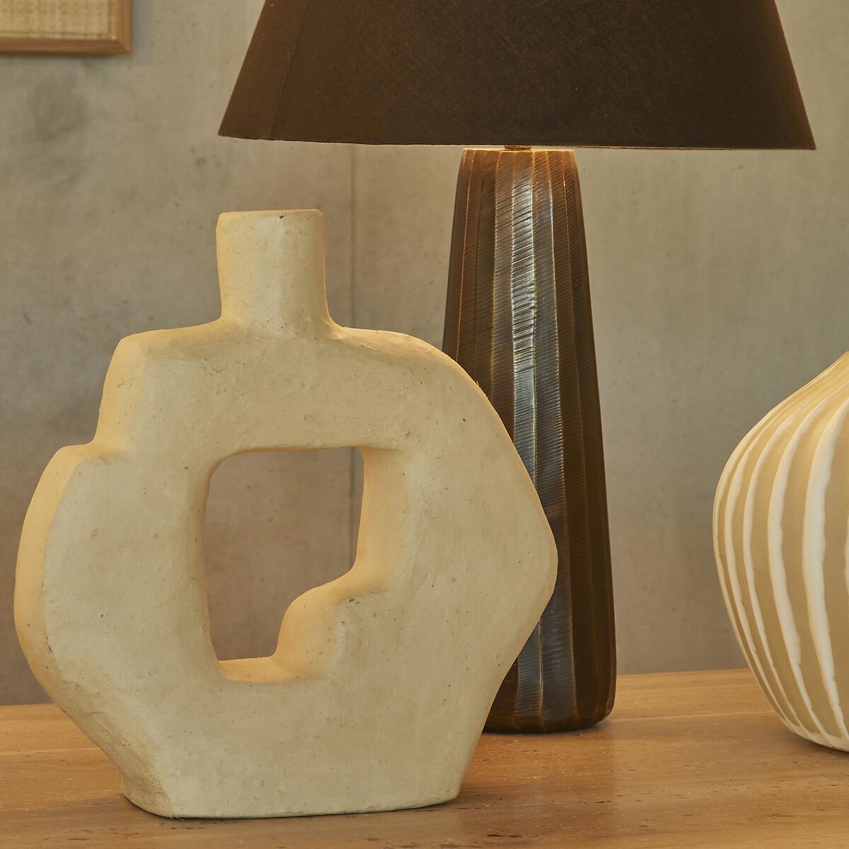I love this lamp for its understated elegance and versatility. Its sleek, textured base adds a touch of warmth and character, making it suitable for both contemporary and traditional interiors. It works particularly well in cosy living spaces, bedside tables, or as an accent in a study, where its tactile finish can be appreciated up close. Practical styling tips include pairing it with neutral-toned cushions or throws to highlight its rich material, or placing it alongside greenery or metallic accents for a layered, curated look. Keep the surrounding decor simple to allow the statement base to stand out, and use a warm bulb to enhance the inviting atmosphere it creates.