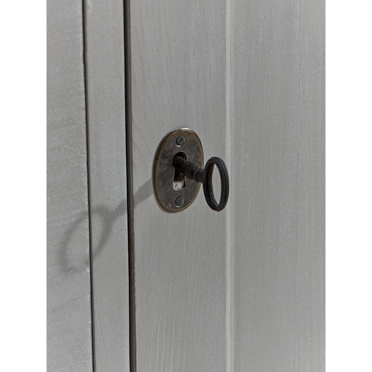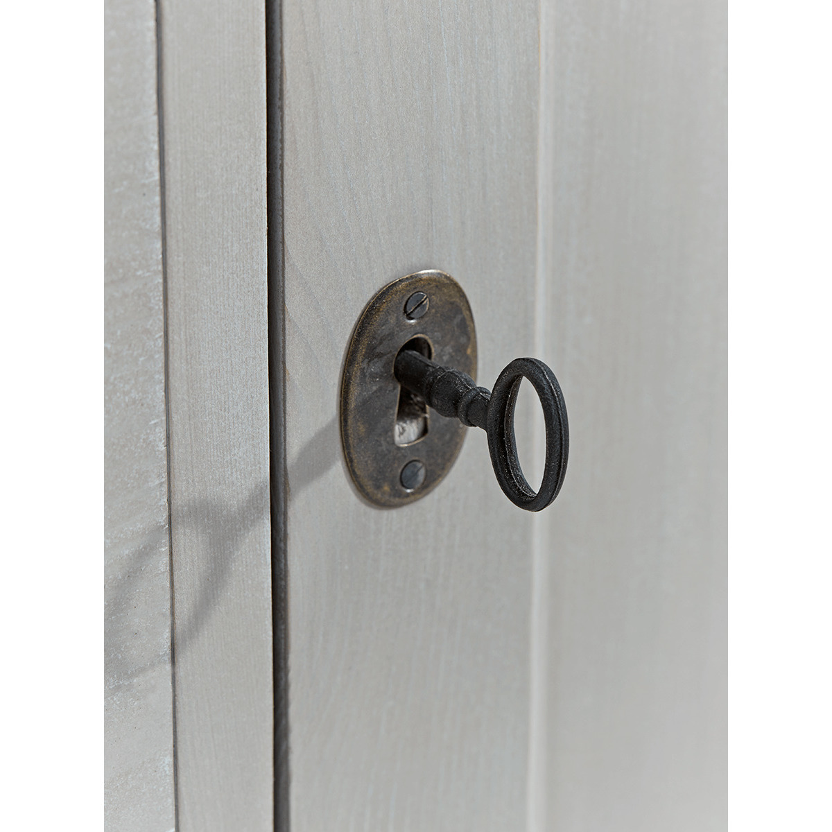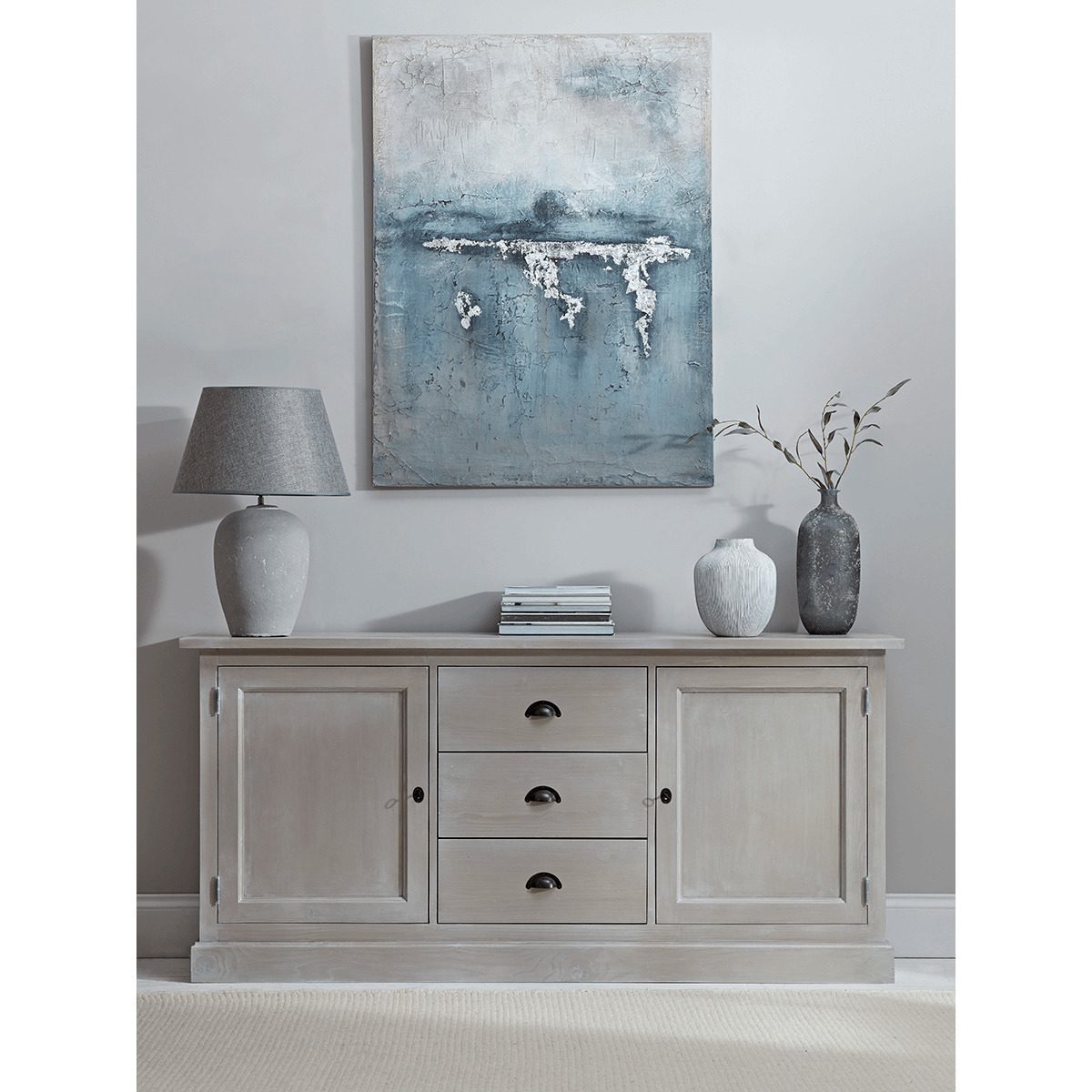 Made from pine with a washed paint effect finish, our Lotte Sideboard is a stylish piece with relaxed form. Three central drawers each have handsome cup pull hardware, and to each side are two door fronted cupboards with lockable key closure. Sat upon a traditional plinth base, this is a classic and useful piece of furniture for the home.