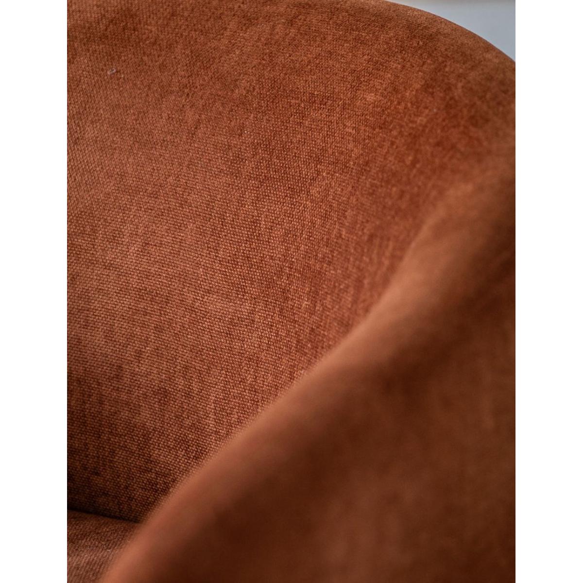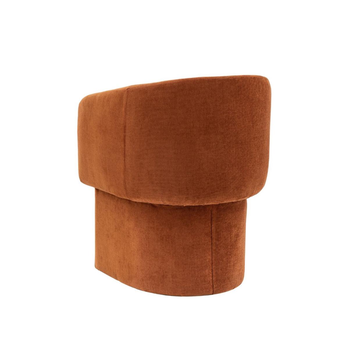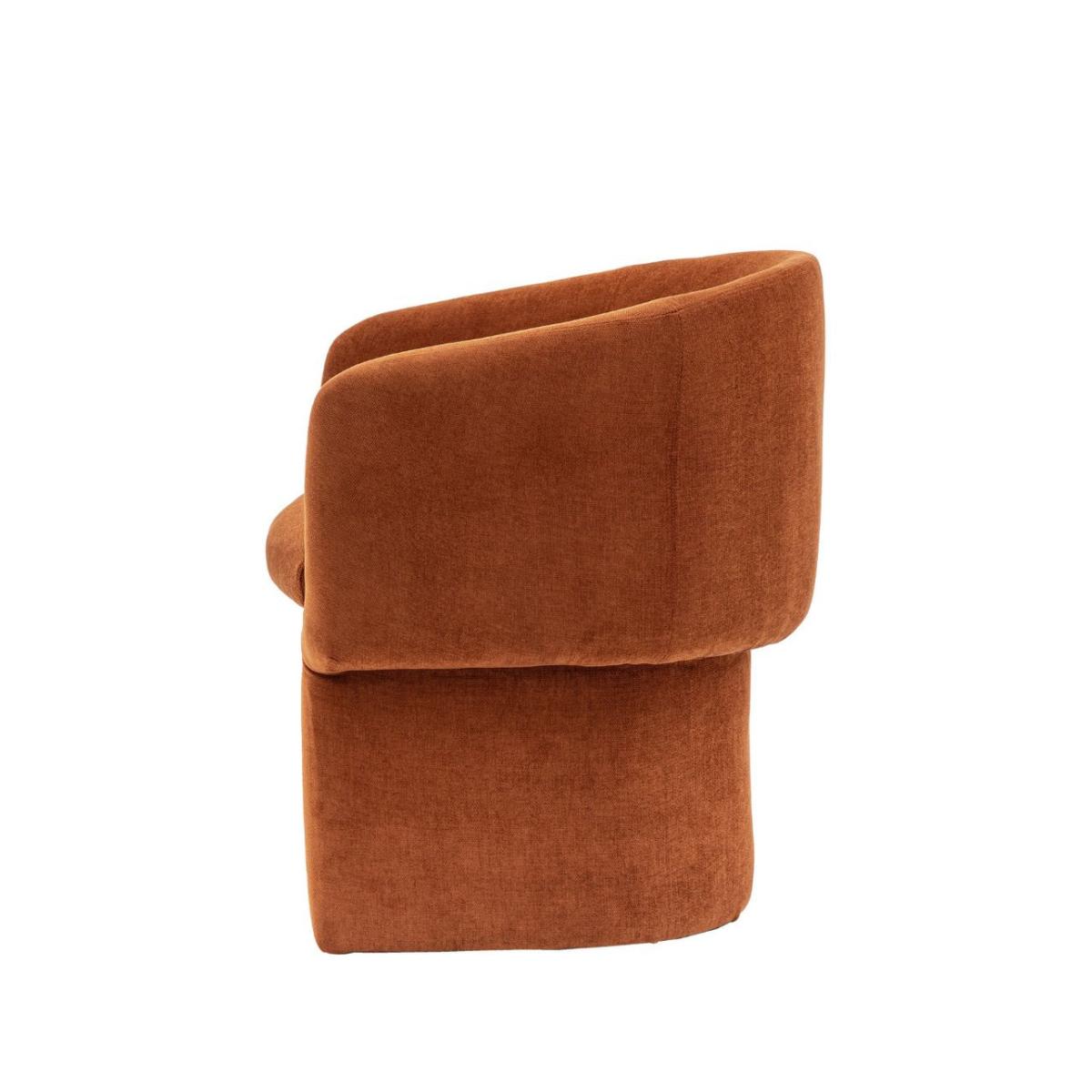 I’m a fan of this rust-coloured Lottie chair for its sculptural yet simple silhouette - the wrap-around back and generous seat pad make it just as comfortable as it is striking. The warm hue works brilliantly against pale walls or concrete floors, adding an instant focal point without overwhelming the space. It suits a range of interiors, from Scandinavian-inspired kitchens to more industrial or boho dining rooms. Pair it with a light oak or marble-top table and introduce brass or black metal accents for contrast. For a pulled-together look, balance the rich rust tone with soft neutrals in linens or a neutral rug, and repeat a hint of the same colour in cushions or accessories elsewhere in the room.