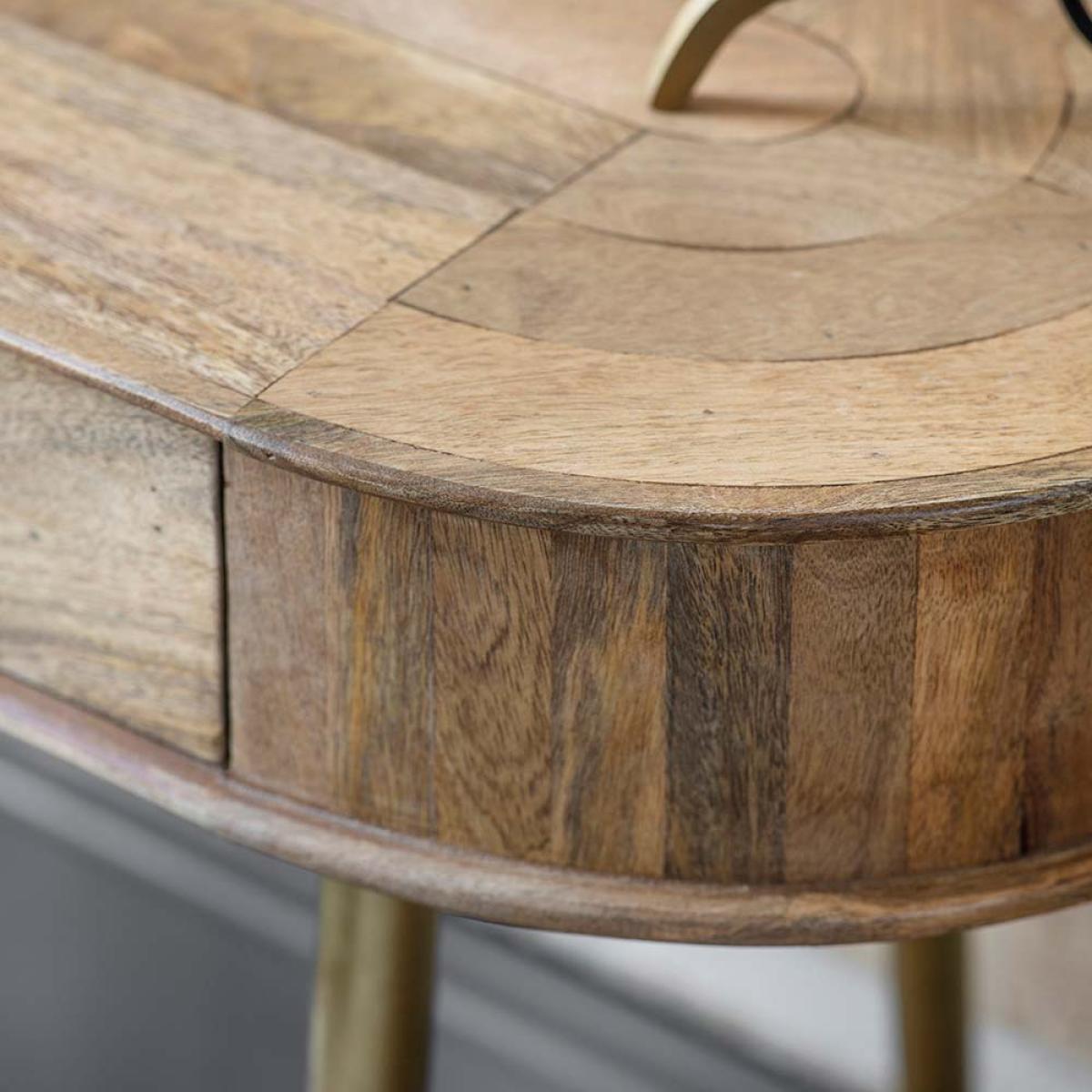 Bring the glamour of the Art Deco period into your bedroom with our stunning new Lottie Dressing Table with Stool. Available as a matching set, it’s expertly crafted from natural mango wood with a beautiful circular parquetry design on top. Its elliptical shape is elegant and ergonomic with two drawers to keep make-up, jewellery and accessories within easy reach. Finished with brass plated legs and handles, it’s complemented by a mink velvet stool that’s as comfortable as it is stylish.