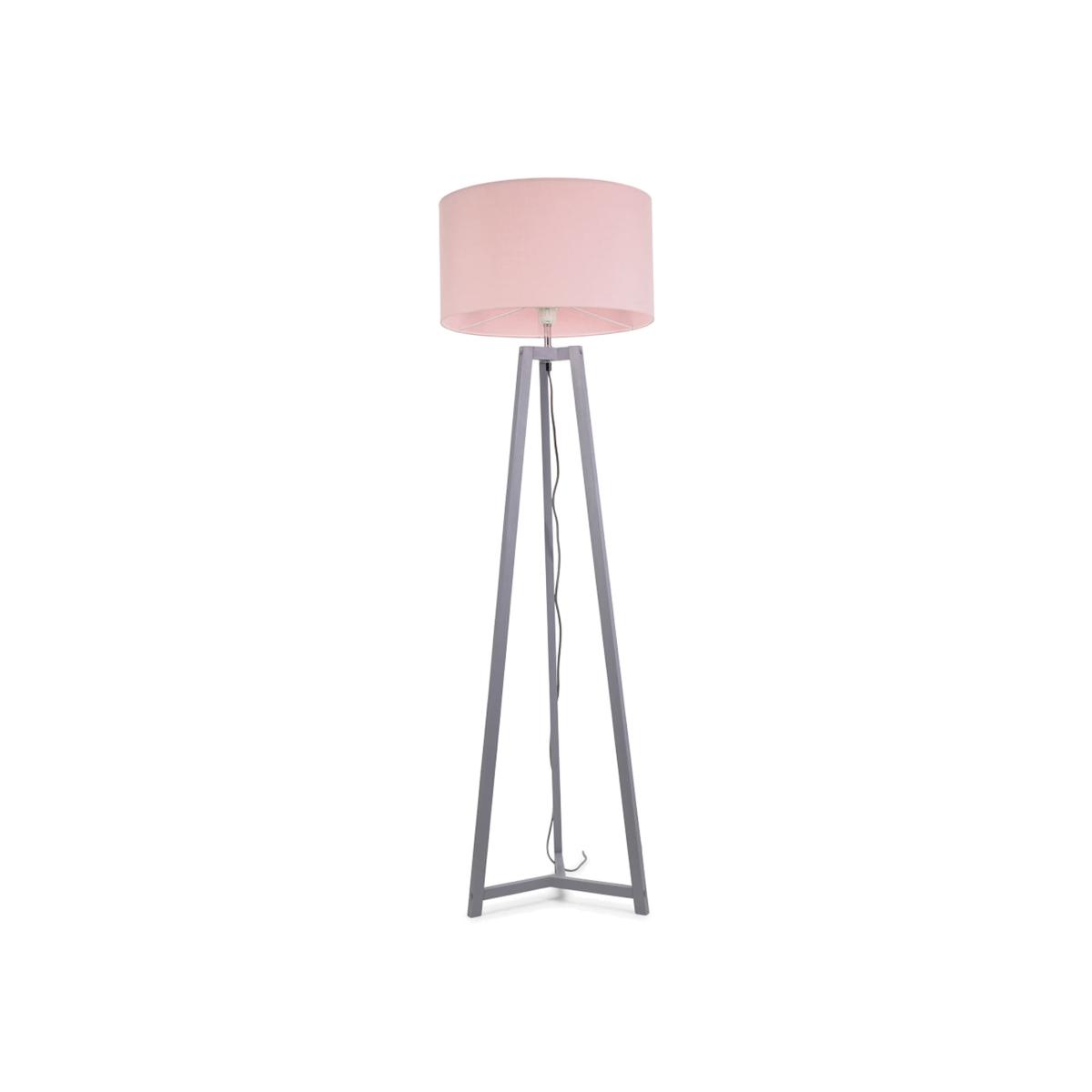 Lottie Grey Wood Floor Lamp Drum Shade - Blush