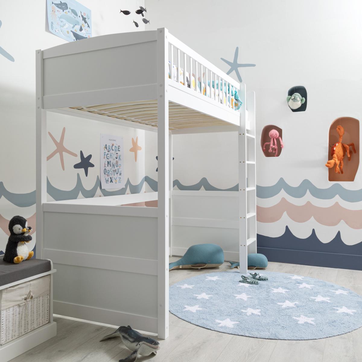 I’m a fan of the Lottie highsleeper in white because its clean lines and neutral hue make it a versatile choice for everything from Scandi-inspired rooms to contemporary minimal schemes. The raised bed frees up valuable floor space below - ideal for a cosy reading corner, a small desk or toy storage baskets - and the sturdy ladder and rails give it a grown-up feel while keeping safety front of mind. For styling, pair it with soft pastels or muted greys on the walls and add layered rugs to define the play or study zone underneath. A clip-on lamp and a few floating shelves will provide practical lighting and display space without overcrowding, while a couple of patterned cushions and a textured throw help to soften the overall look.